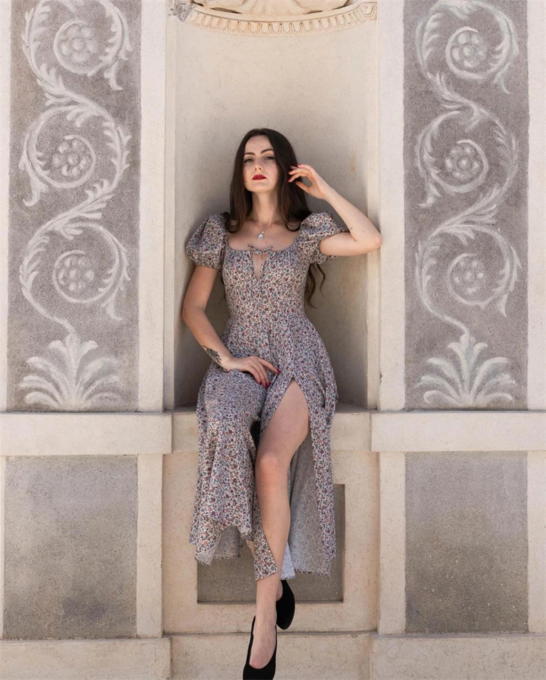 Винтажное Цветочное платье, женское Хлопковое платье с разрезом сбоку, Платье макси с квадратным воротником и пышными рукавами для женщин, лето 2021