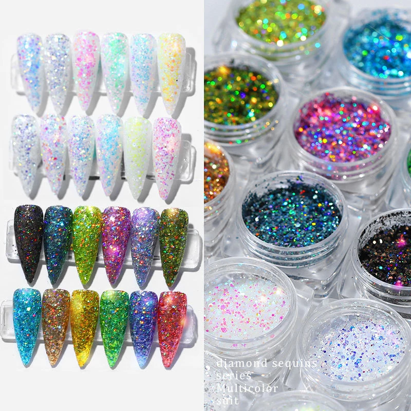 12 коробок, радужные блестящие Блестящие Блестки для ногтей, украше...
