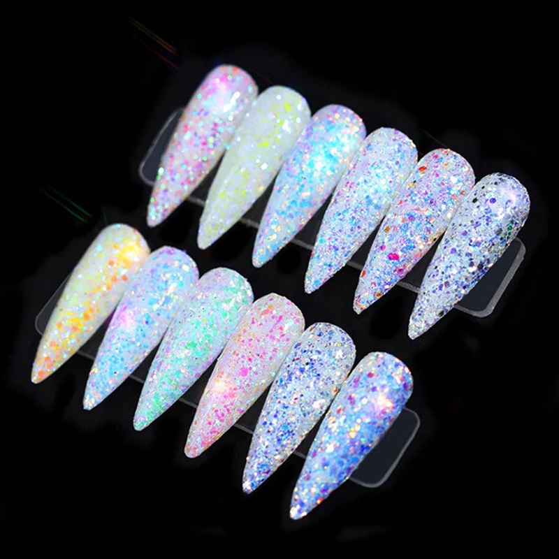 Блестящая пудра для ногтей, 12 шт., радужные хлопья блесток, золото, серебро, супер блестящие, для дизайна ногтей, украшение для маникюра, все для маникюра