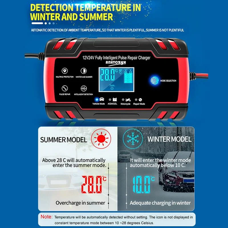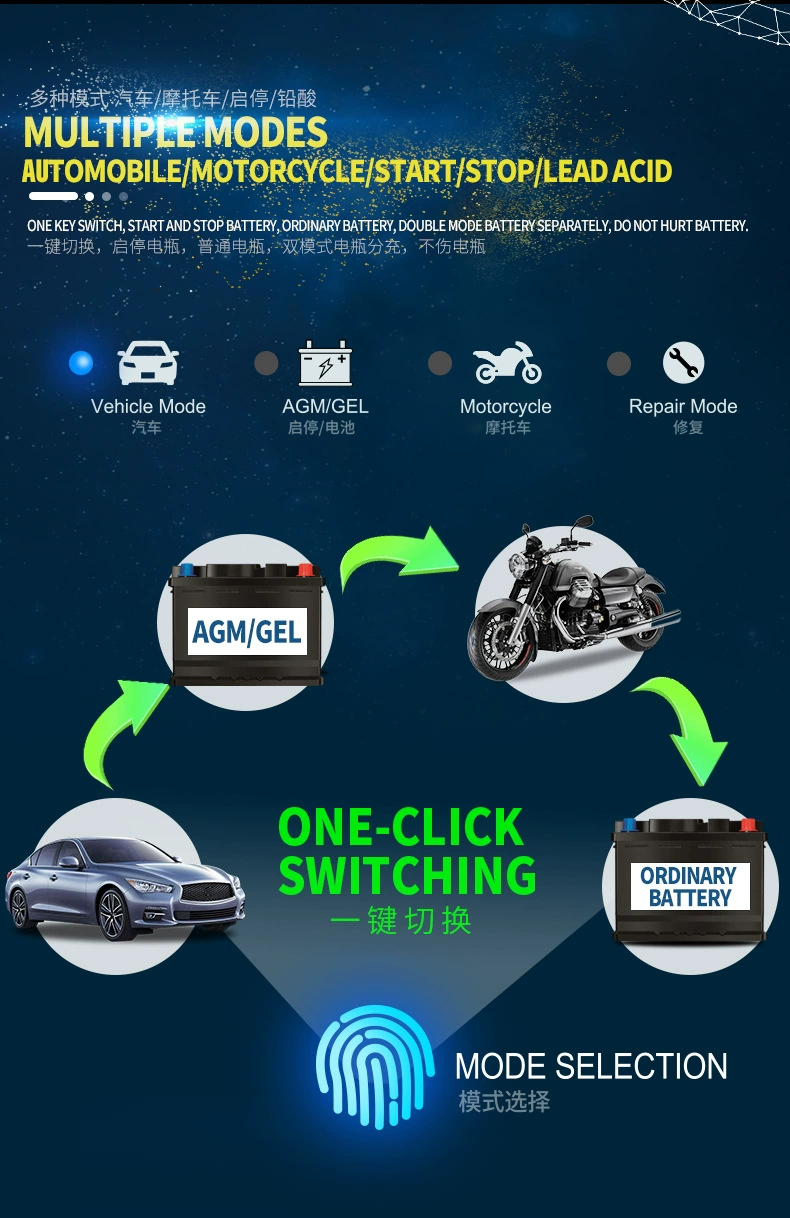 Несколько режимов: автомобиль/мотоцикл/AGM/гель/свинцово-кислотный