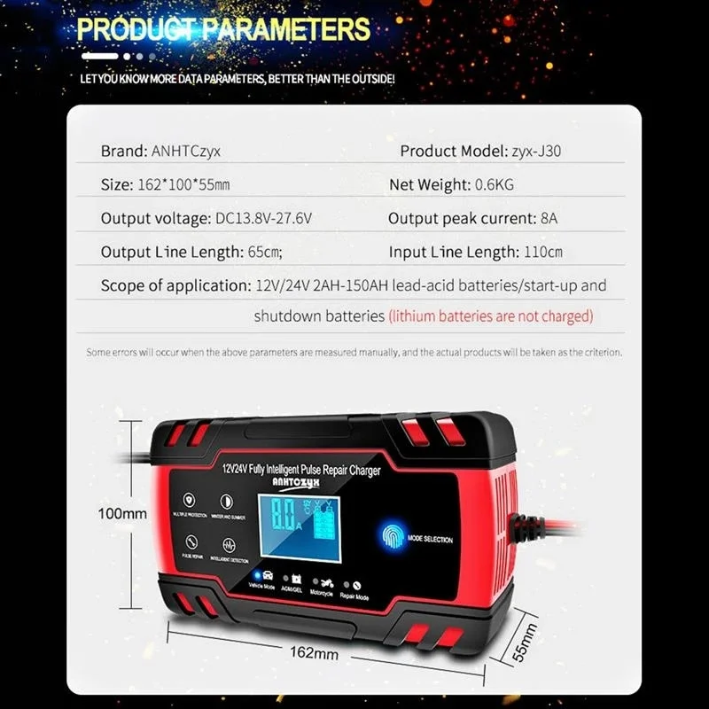 Место установки на автомобилеmotorcycle car battery charger 12V 55AH 75AH 80AH 100AH
