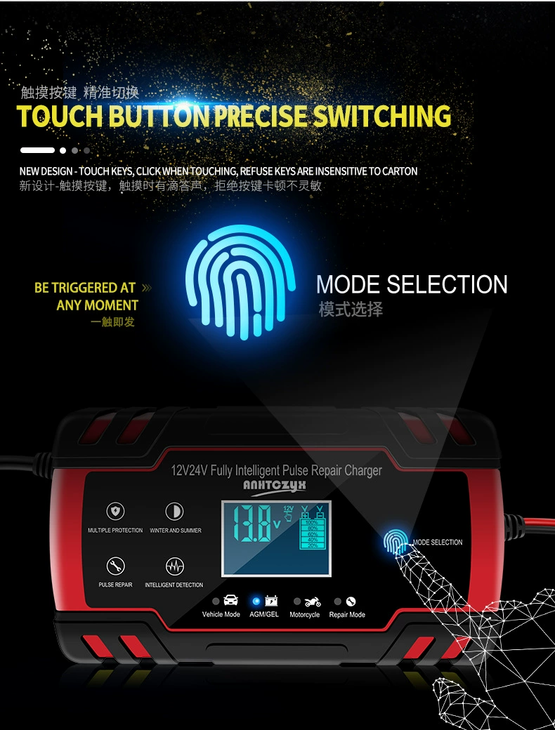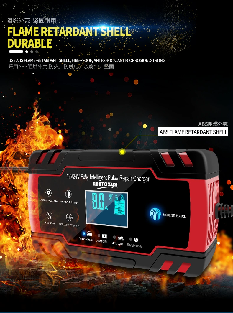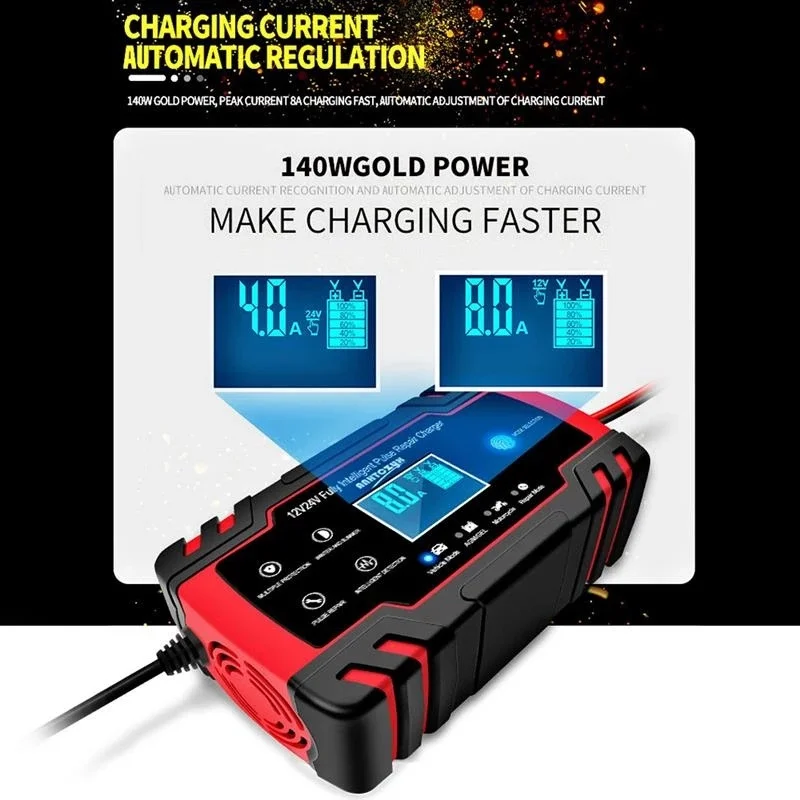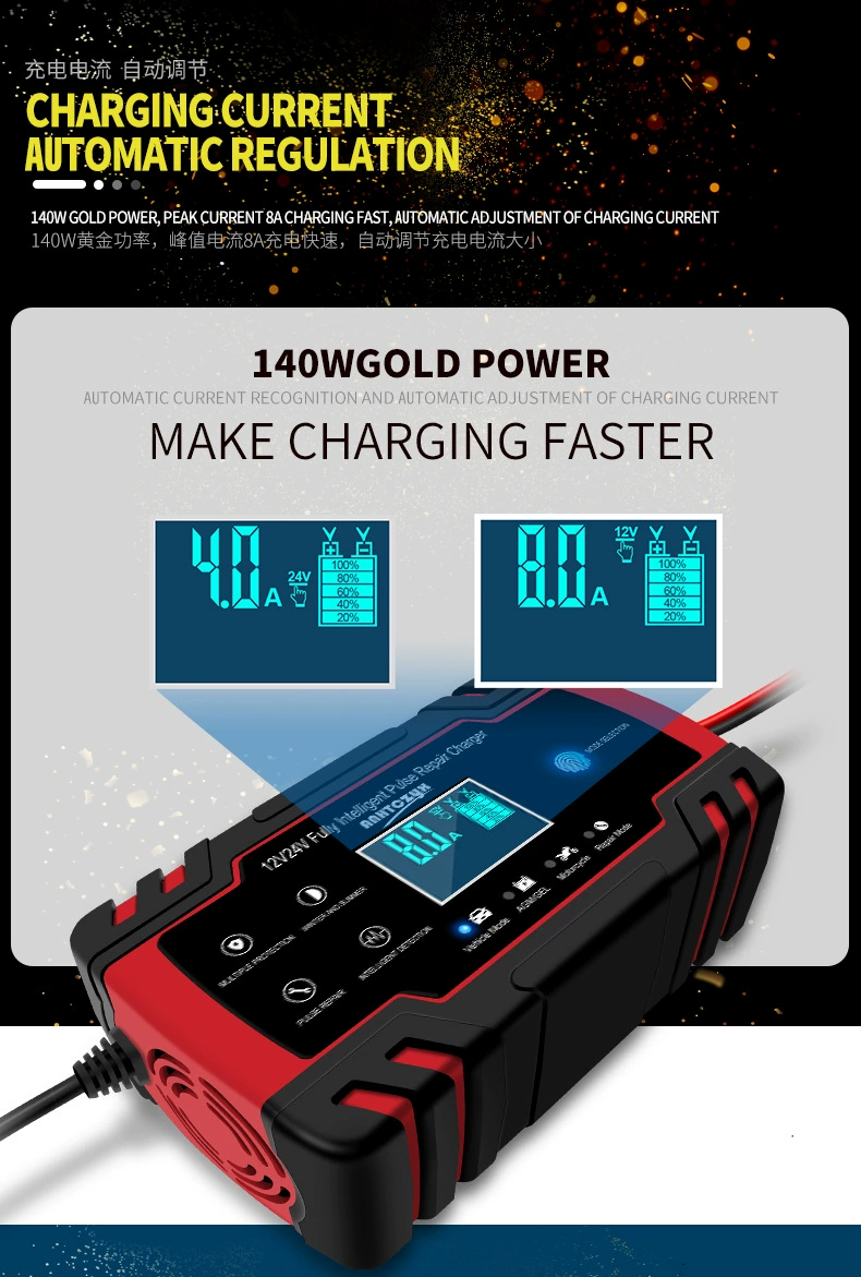 12V/24V 8A/4A полностью автоматическое зарядное устройство цифровой ЖК-дисплей автомобильный Грузовик мощность импульсный Ремонт зарядное устройство s для влажной сухой свинцово-кислотный гель