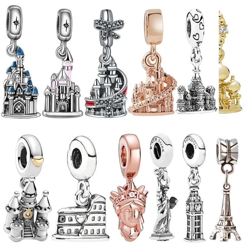 Подвеска в виде замка Disny, подвеска для браслета Pandora, подвески для браслета, женские бусины с известными знаками, бижутерия сделай сам, браслеты, подвески, аксессуары