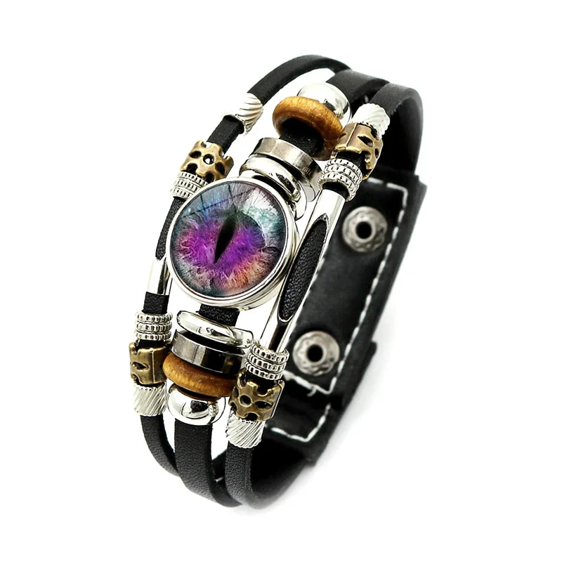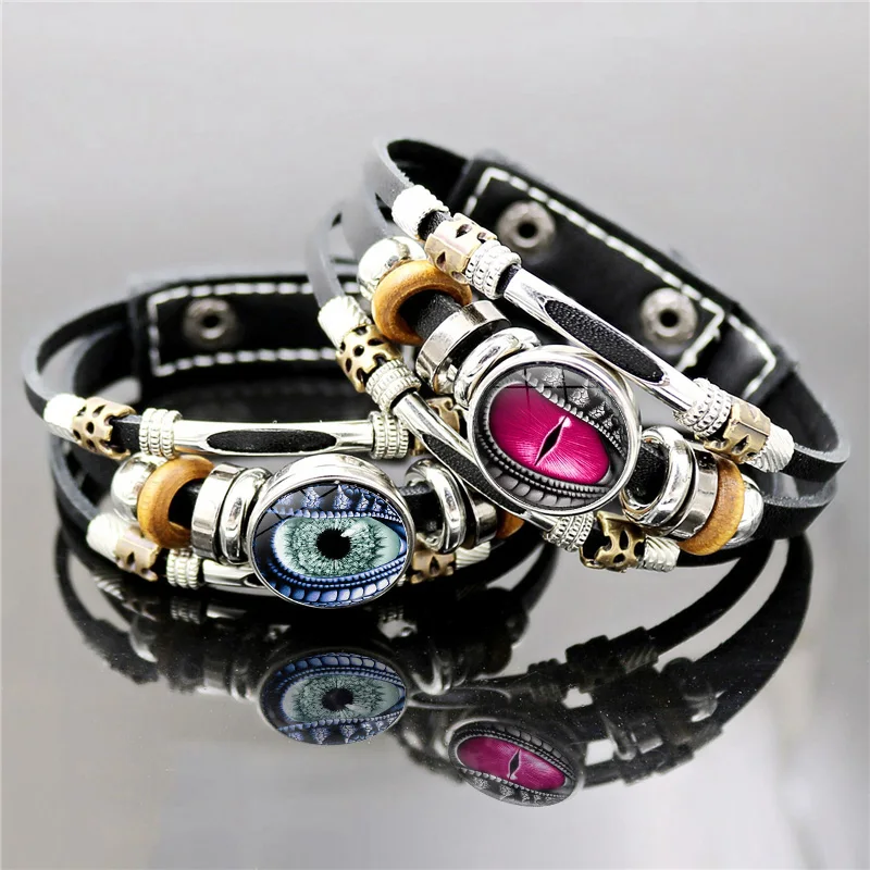 Браслет со стеклянными кнопками-звездами для мужчин и женщин, многослойные ювелирные изделия в стиле панк с изображением дракона, совы, кошачьих глаз