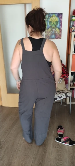 очень свободный! на мой 54 и рост 168 длинные слишком штаны, почти до пола. Не видно совершенно красивой формы низа. Материал очень тонкий, тряпочка, не для комбинезона!!! Посмотрим летом и ушить и укоротить.... Может это просто не мое..