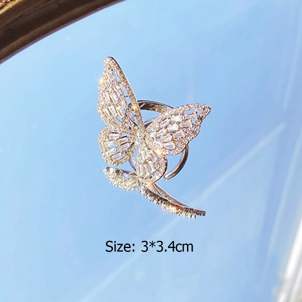 Хит продаж циркониевые кольца с бабочкой и кристаллами для женщин 2021 открытые Регулируемые кольца с блестящими бабочками Свадебные Ювелирные изделия Подарки Прямая поставка