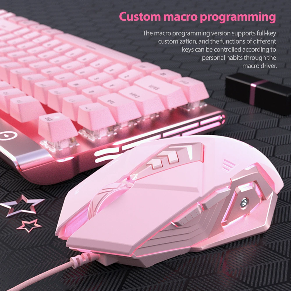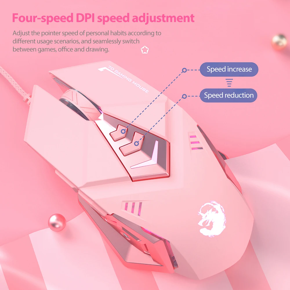 Розовая USB мышь Проводная 2400 DPI оптическая 6 кнопок Регулируемая Проводная игровая мышь для компьютеров ноутбуков настольных офисных мышей