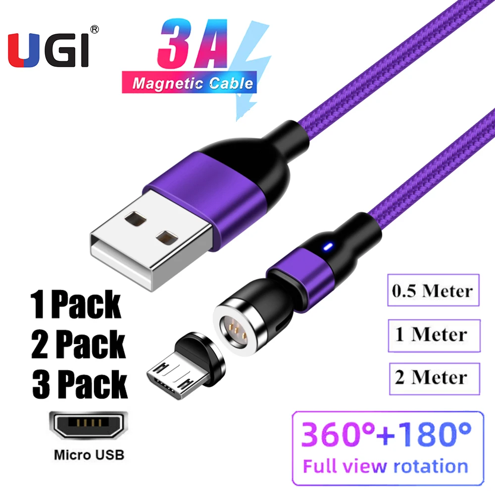 UGI 540 ° 3A Быстрая зарядка Магнитный кабель Micro USB Android кабель Мобильный телефон Аксессуары для Samsung HTC Xiaomi Redmi Huawei горячая распродажа