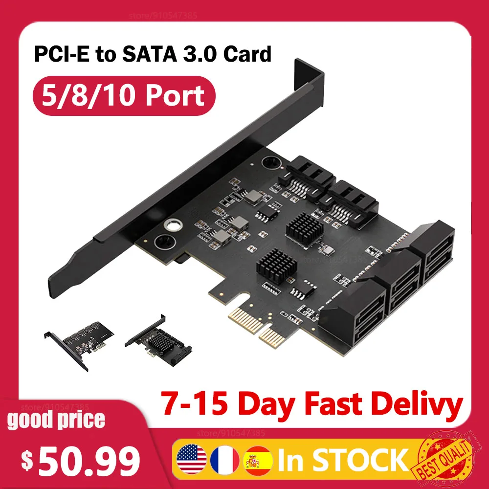 Плата контроллера SATA 3,0-PCI-E 6 Гбитс, 5 портов, 8 портов, 10 портов, плата расширения SATAIII PCIe, PCI Express, адаптер, порты Sup, RAID