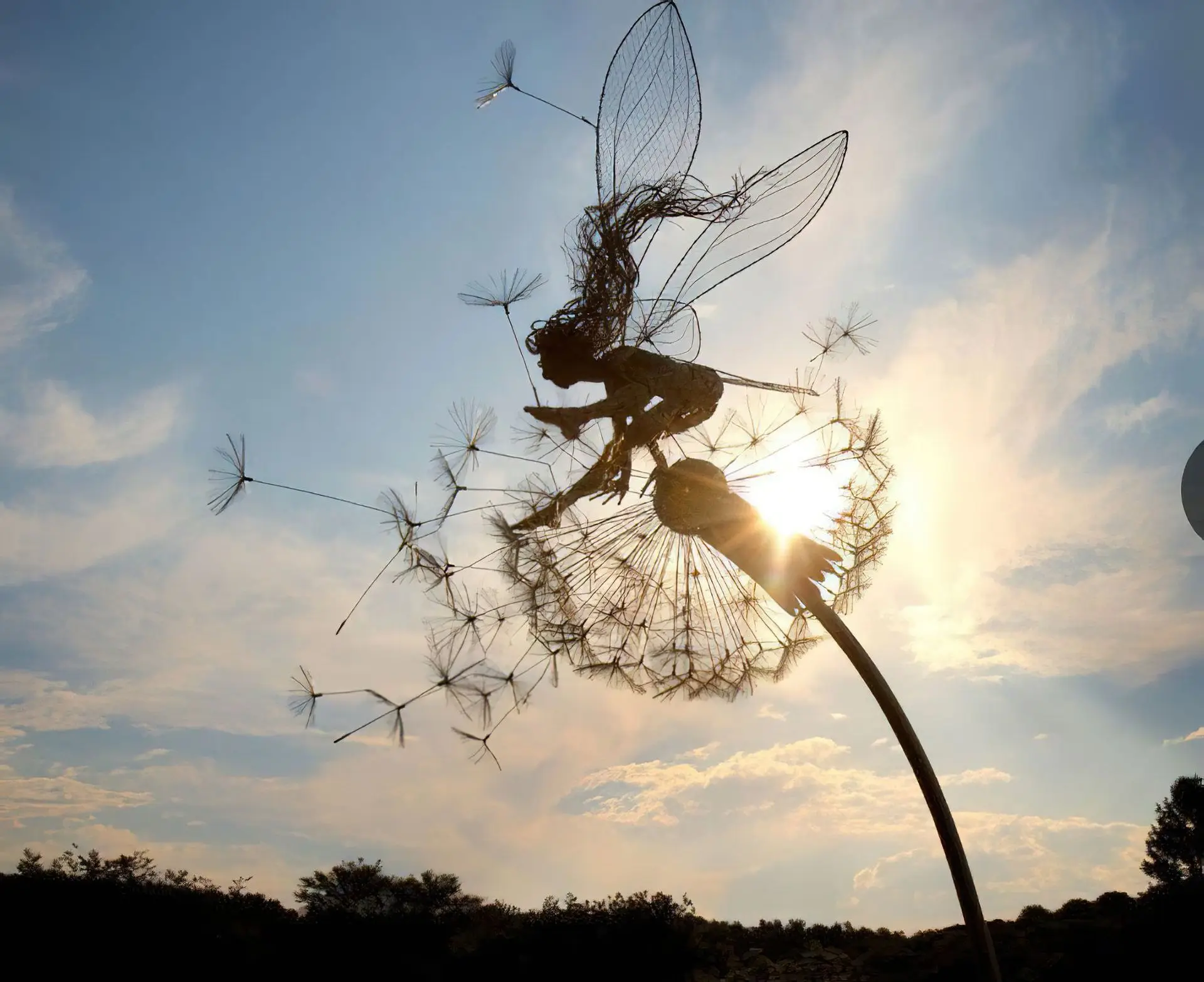 Садовое сказочное украшение, Одуванчик, металлический эльф, силуэт,...