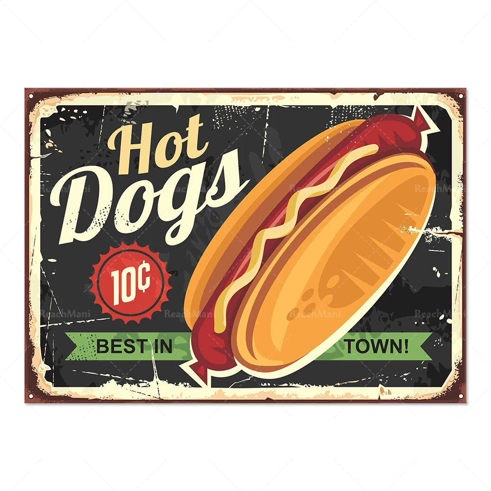 Постер в стиле ретро 50-х годов с изображением еды, гамбургеров, жареных куриц, хот-догов, барбекю, американской кухни, ресторана, настенный художественный принт