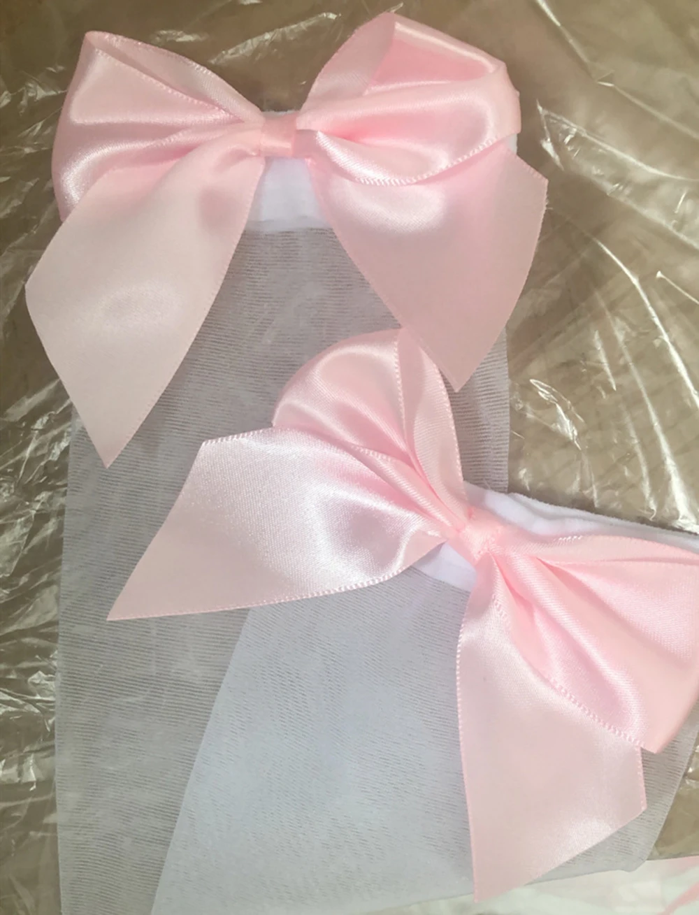 Женские чулки в японском стиле Лолита, милые розовые чулки выше колена с бантом, прозрачные длинные носки из чулки высотой до бедра шелка