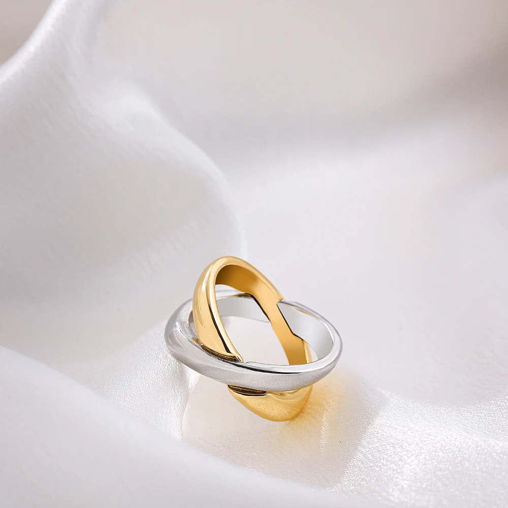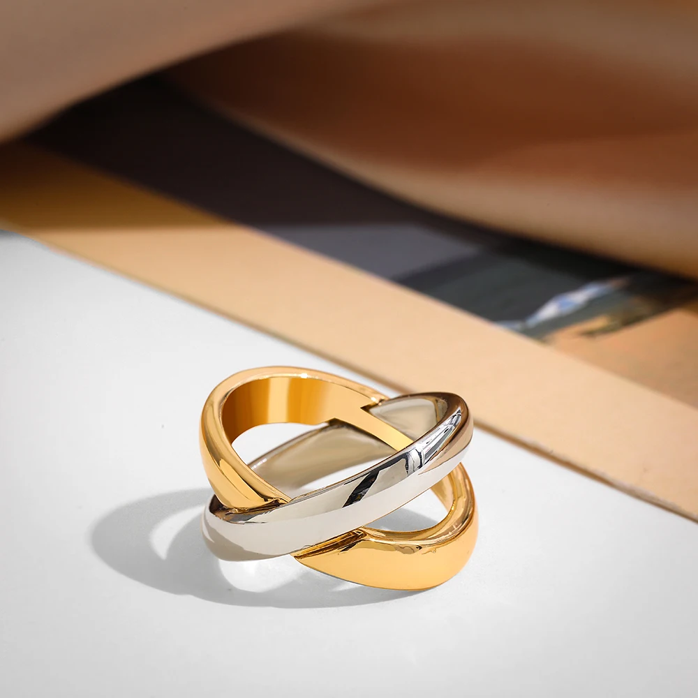 Новинка, модные смешанные металлические кольца X-образной формы с перекрещивающимися кристаллами золотого и серебряного цвета, минималистичное круглое геометрическое кольцо, Женские Ювелирные изделия, подарки