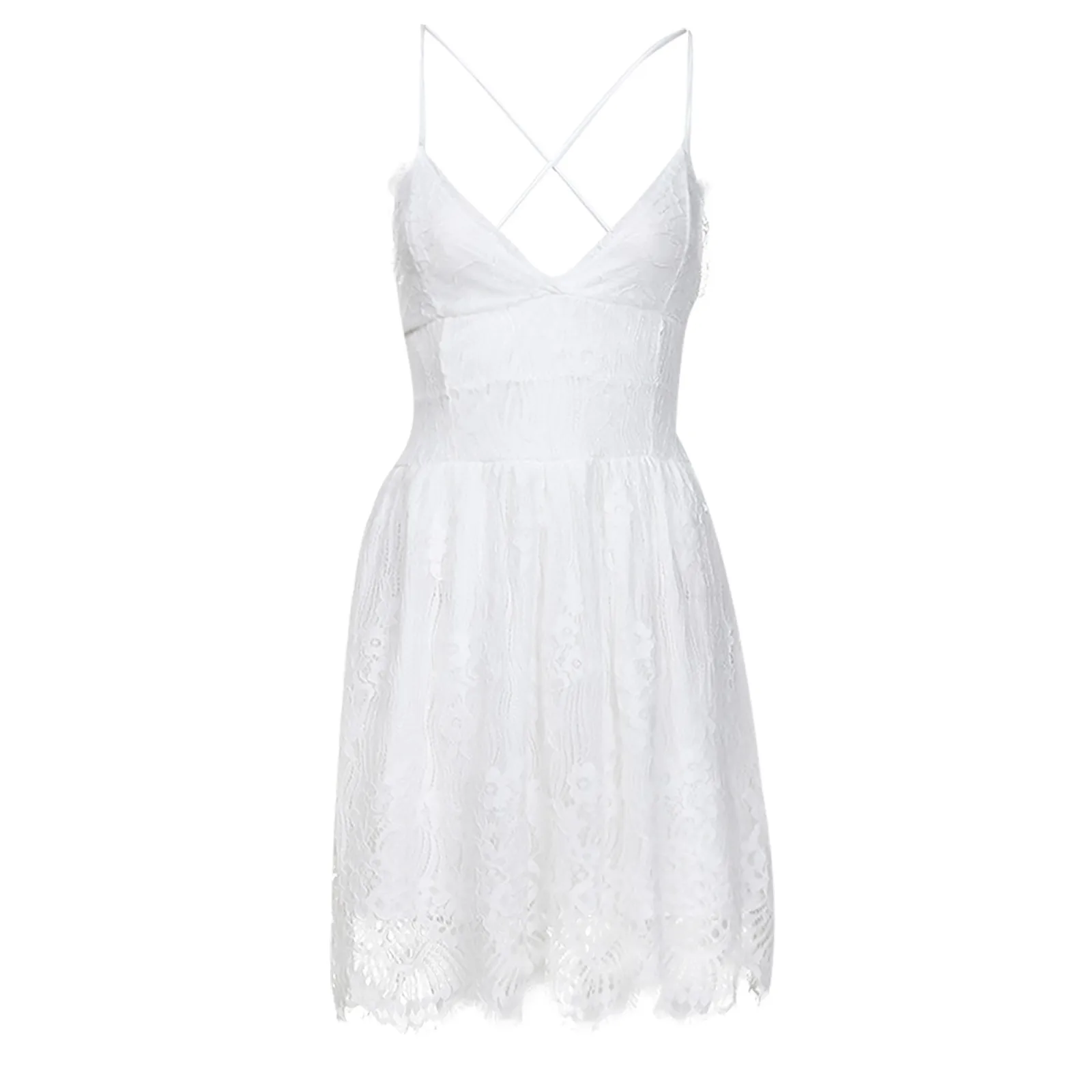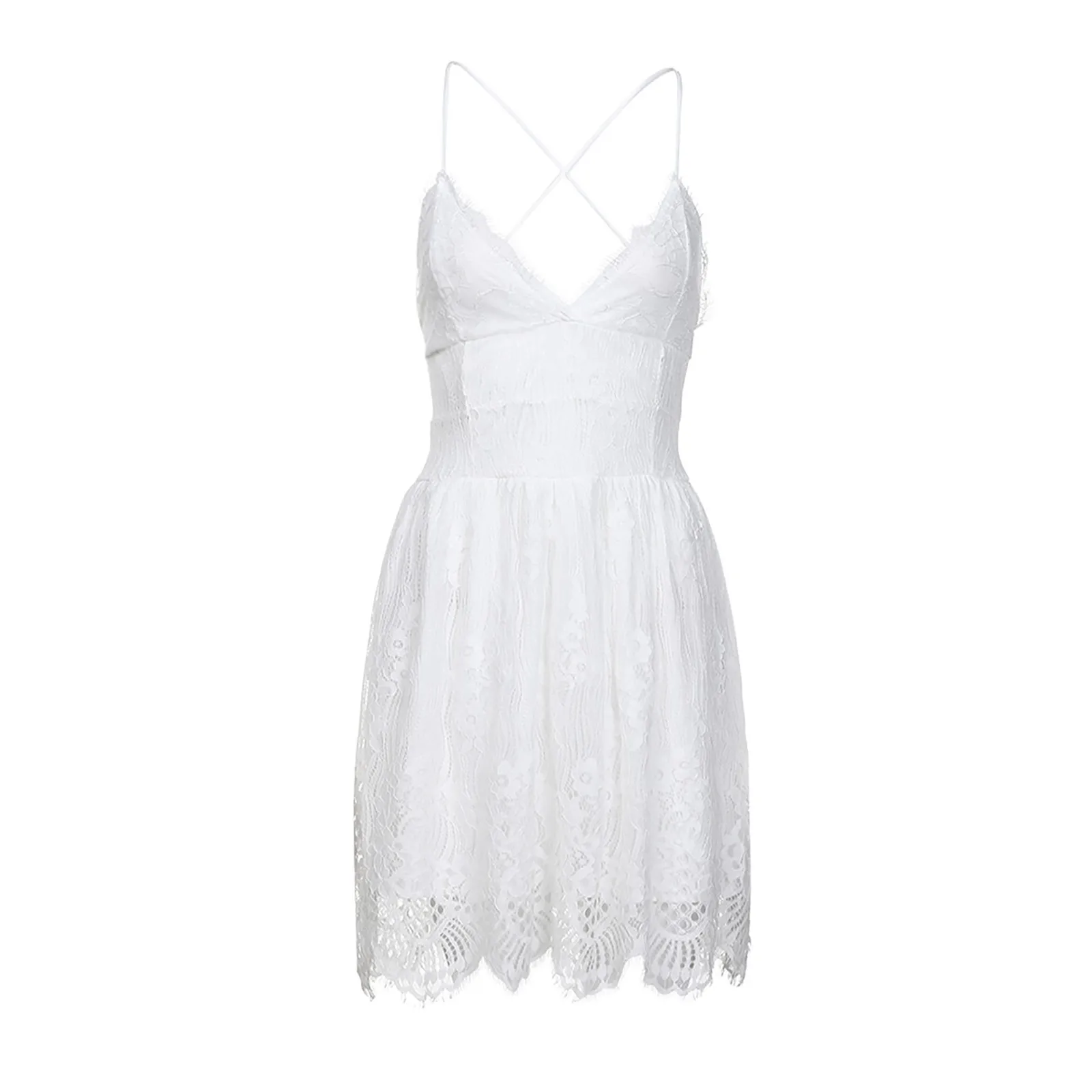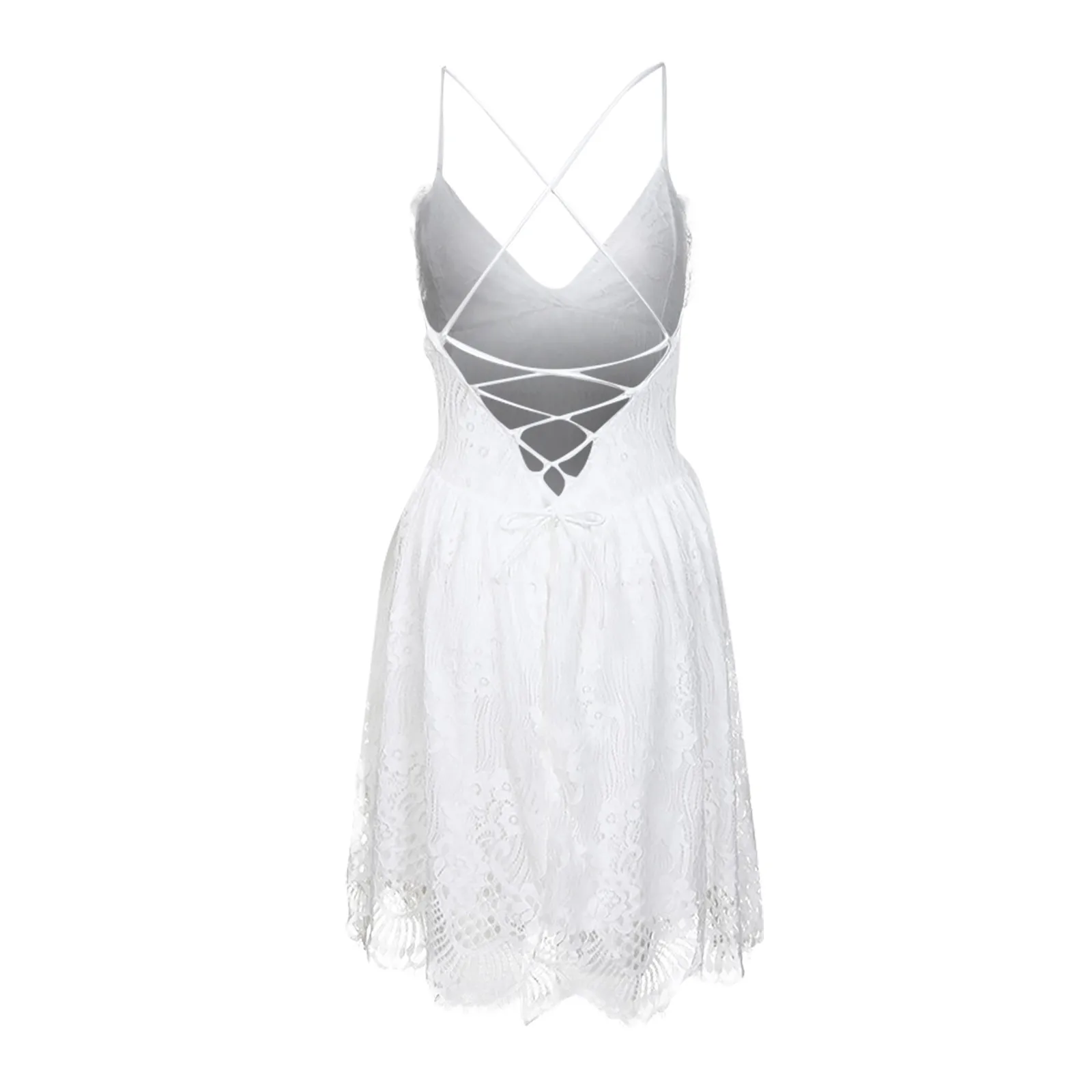 Женское кружевное мини-платье, летнее короткое платье с подтяжками в стиле пэчворк, сексуальные с открытой спиной белые
