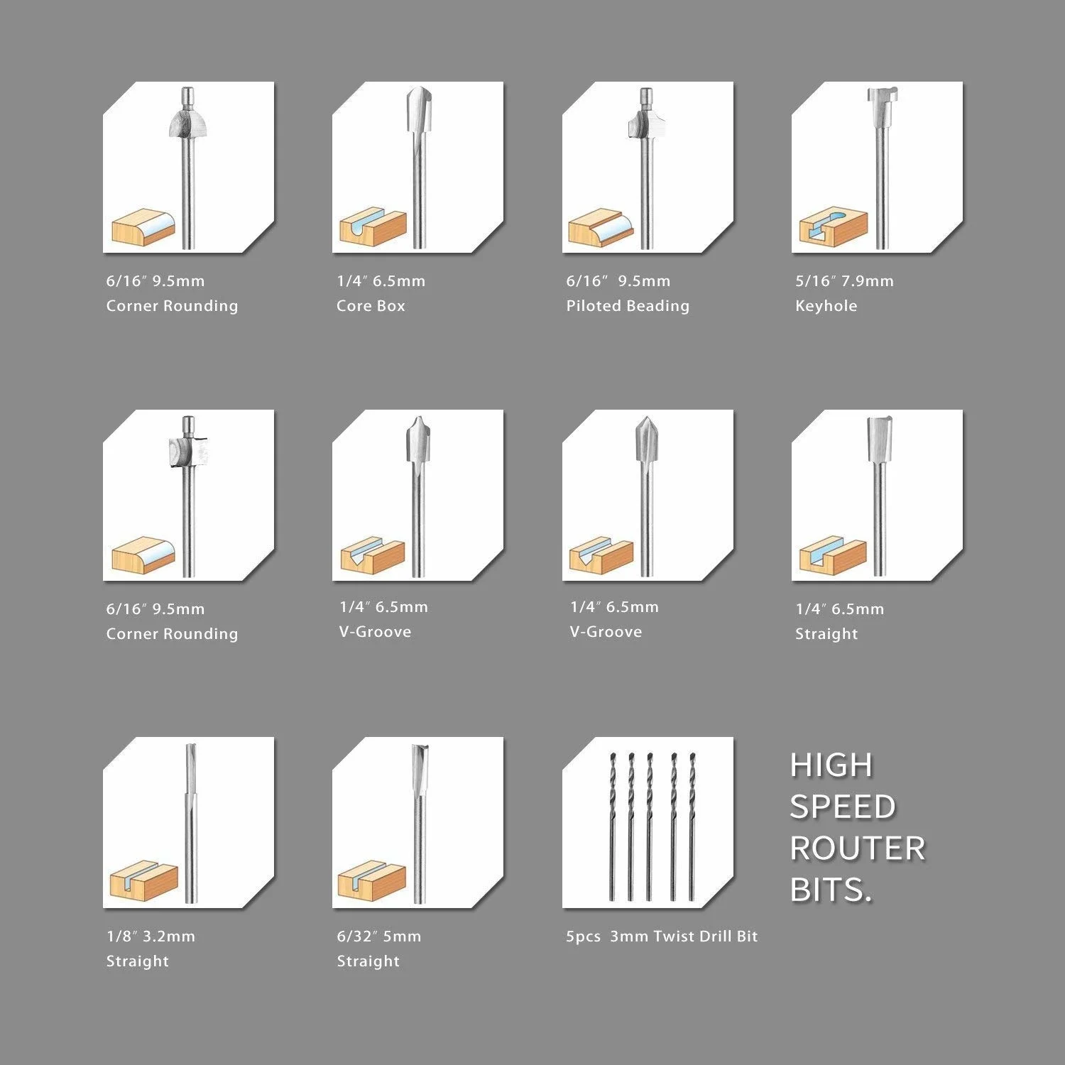 Фасонные фрезы HSS фрезы для дерева, фрезы, подходят для Dremel, набор вращающихся инструментов 1/8 ", 3 мм, хвостовик, столярные фрезы, шлифовальная полировальная головка