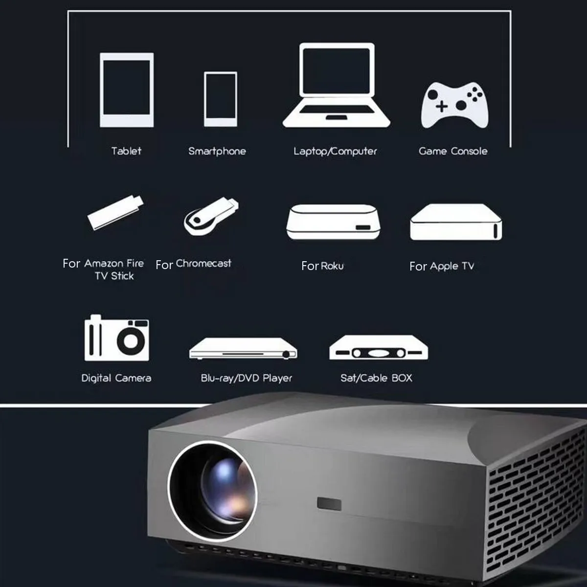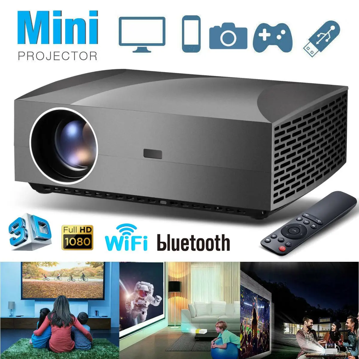 Проектор светодиодный 3D, 4K, Android 6,01, 2 ГБ + 16 ГБ, Wi-Fi, Full HD, 1080P, 300 дюйма