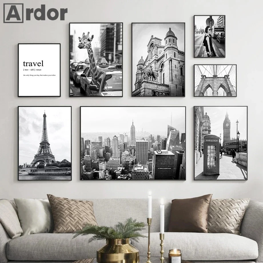 Черно-белый архитектурный настенный плакат жираф животное Картина на холсте Эйфелева башня Художественная печать современные картины Домашний декор