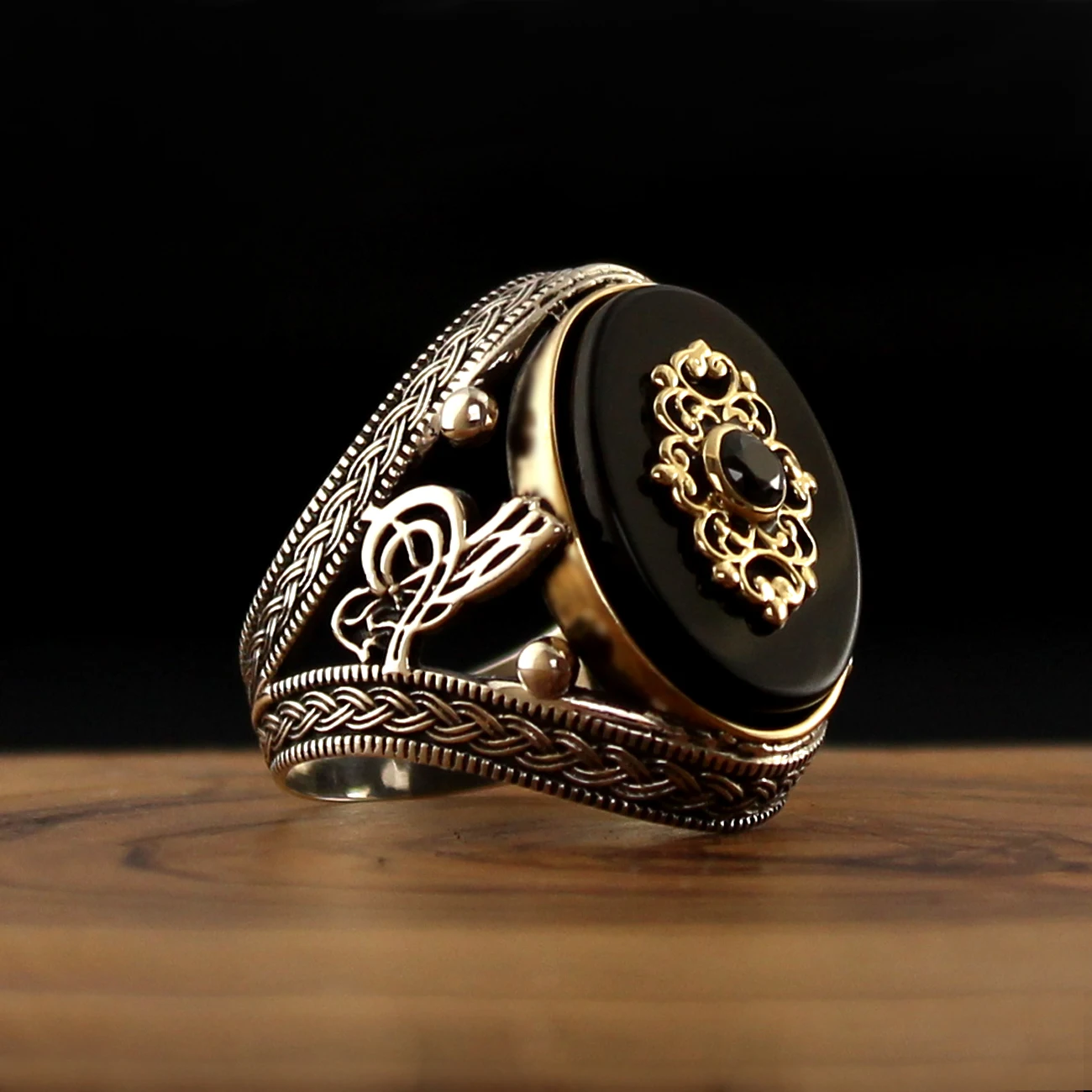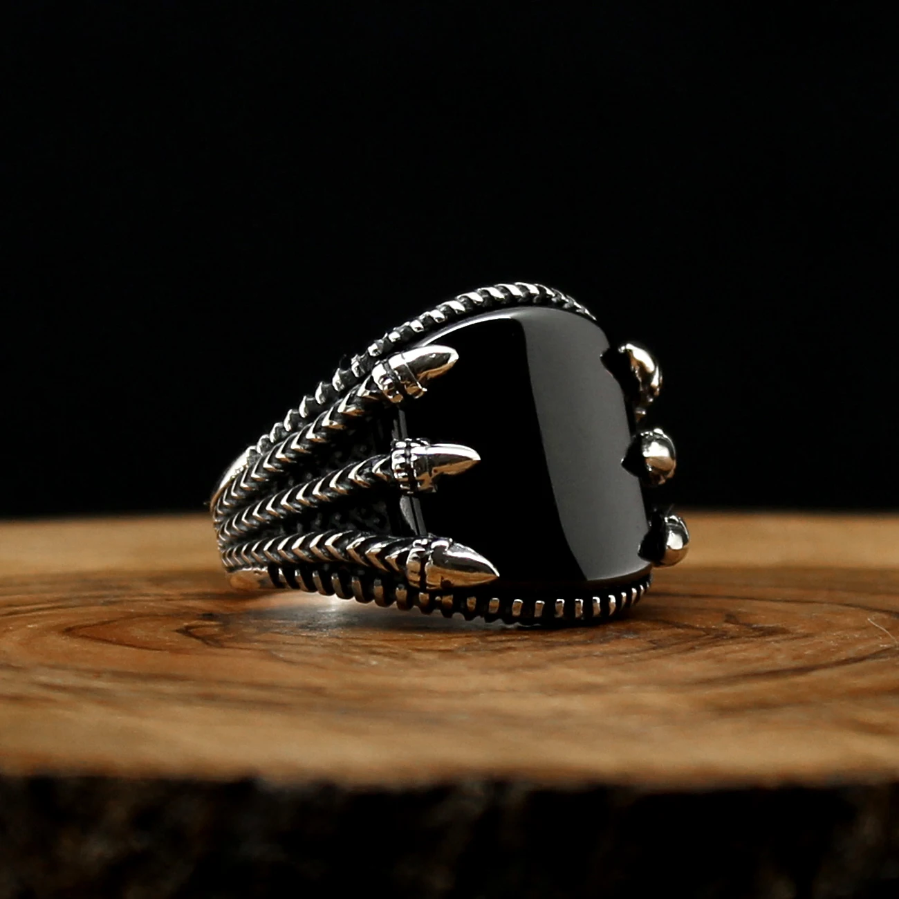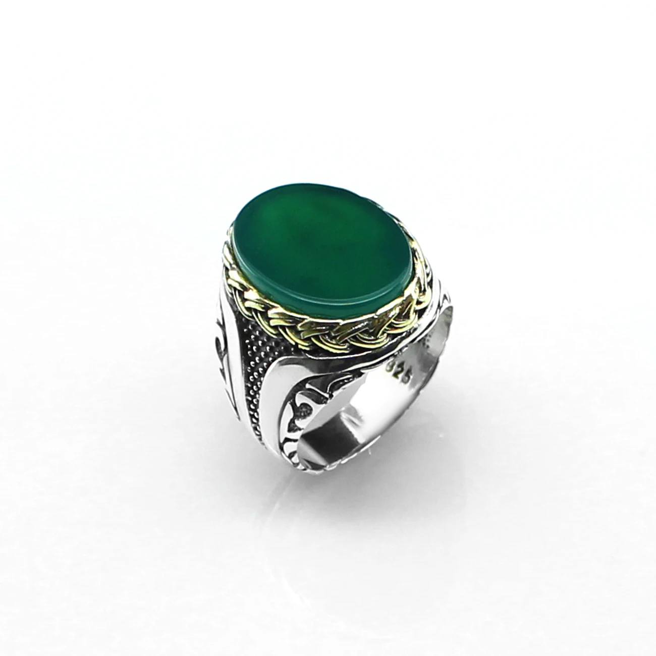 Pukka Real Pure 925 Sterling Silver Natural Stone Кольцо ручной работы для мужчин и женщин Высококачественные ювелирные изделия Панк Ретро Мода Унисекс Винтаж Циркон Оникс Aqeq Подарочный аксессуар