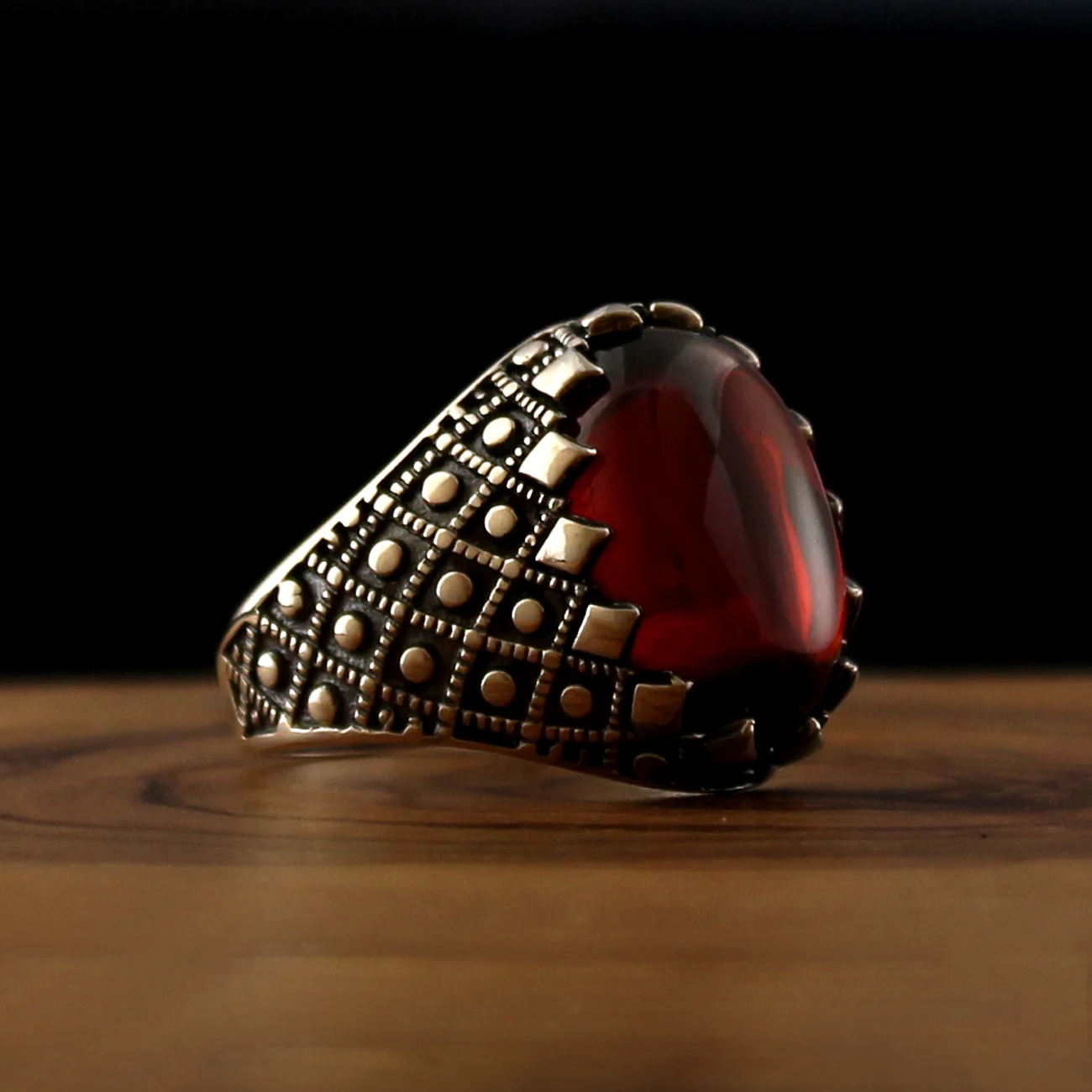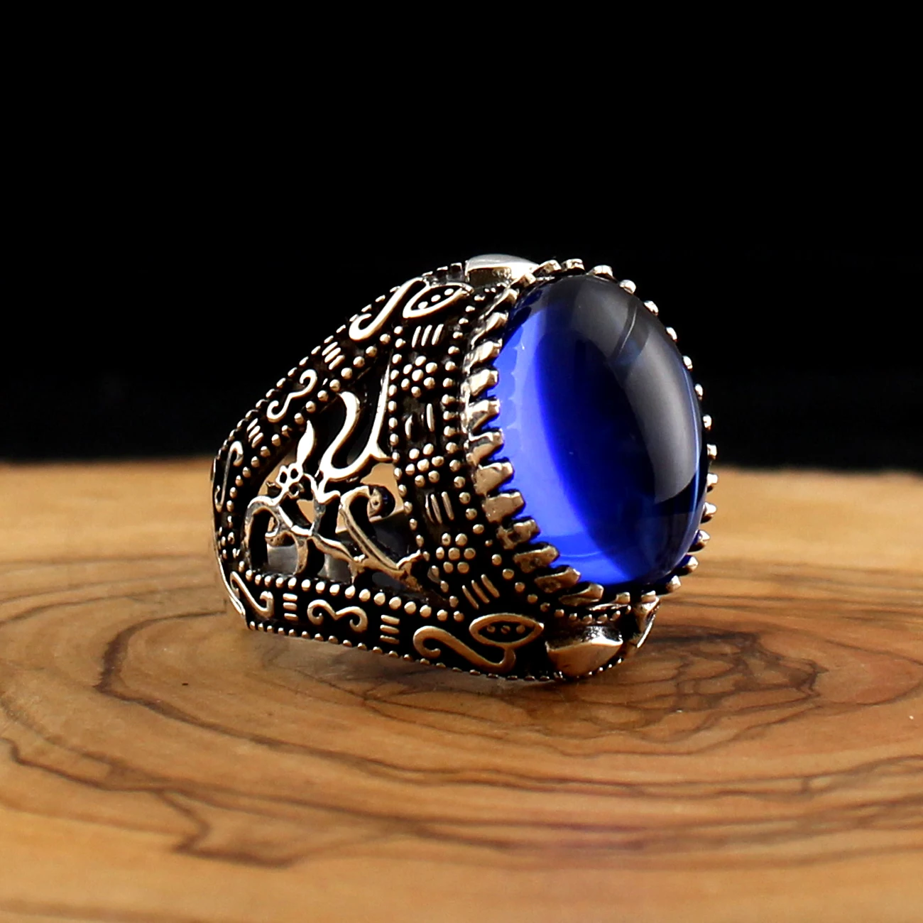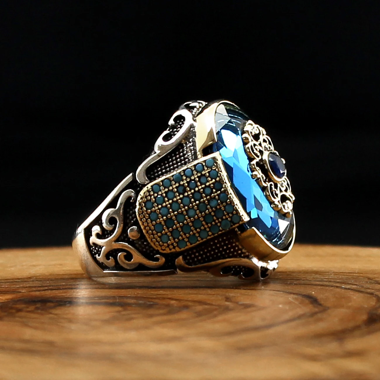 Pukka Real Pure 925 Sterling Silver Natural Stone Кольцо ручной работы для мужчин и женщин Высококачественные ювелирные изделия Панк Ретро Мода Унисекс Винтаж Циркон Оникс Aqeq Подарочный аксессуар