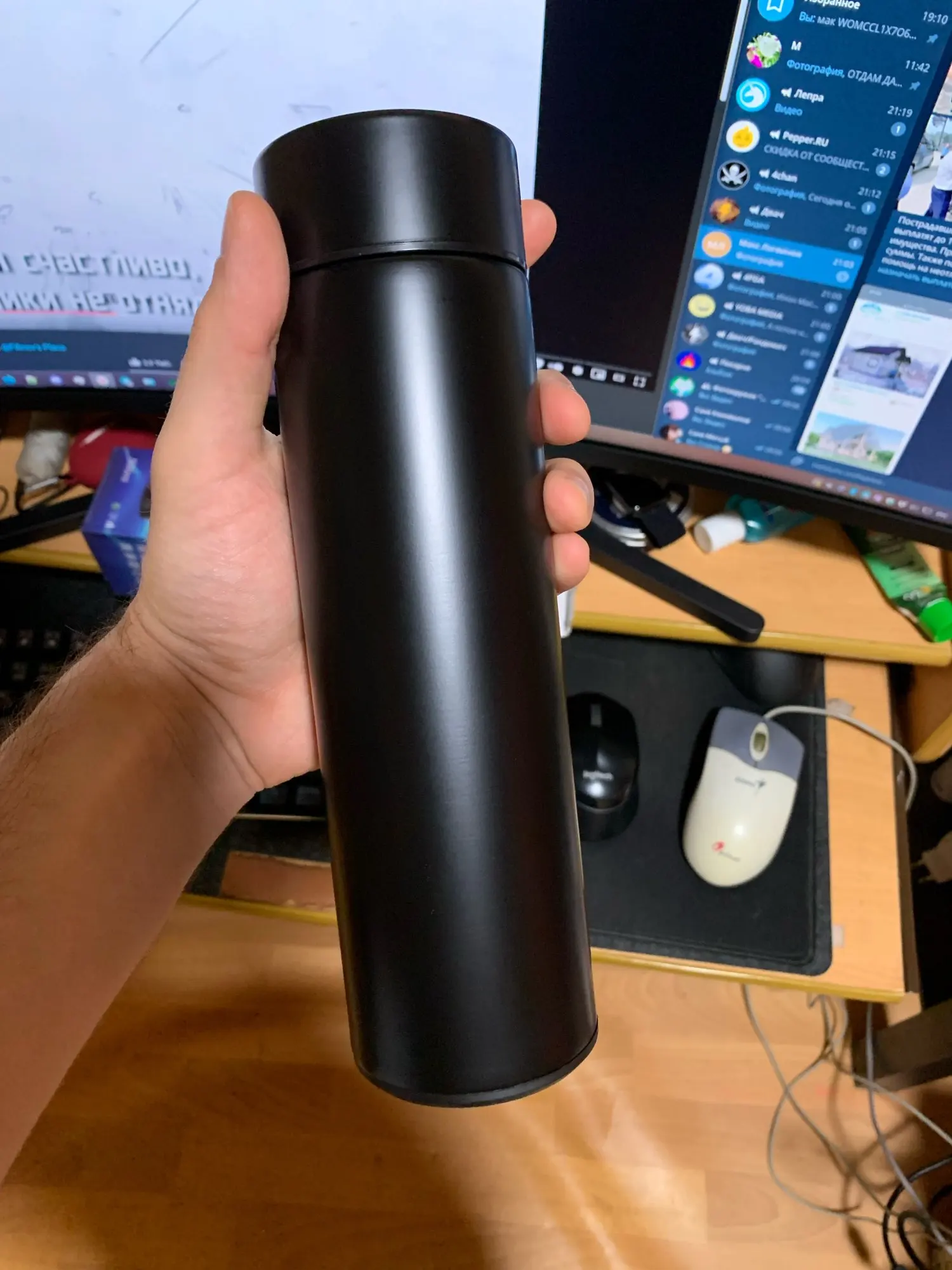 доставка очень быстро 500₽ со всеми скидками - супер!! очень лёгкий, маленький, НО: кипяток налили показал 97 градусов через 12 часов температура на дисплее =61° и красная капелька, что обозначает кипяток!! СУПЕР , покупка бомба!!! заказывайте, не пожалеете корпус не греется, но и вода не остывает