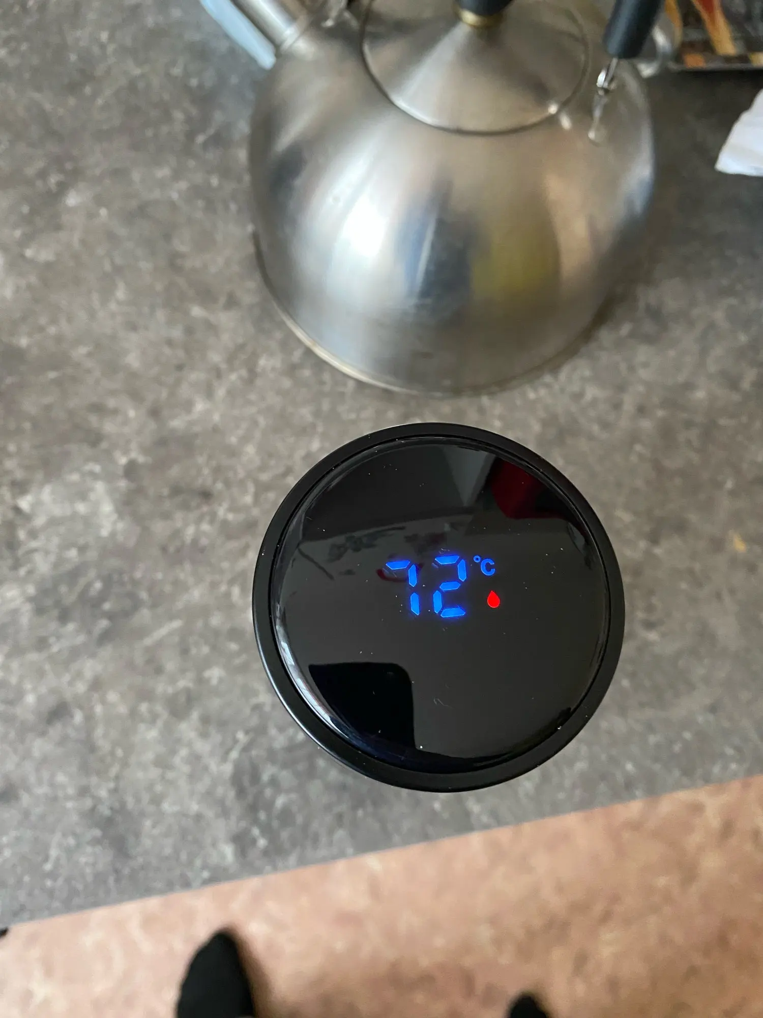 Очень понравился. утром заливаю кипяток, кладу черный чай и мяту, вечером 80-87 градусов, чай идеален. батарейка меняется но очень сложно. крышка сверху царапается легко.