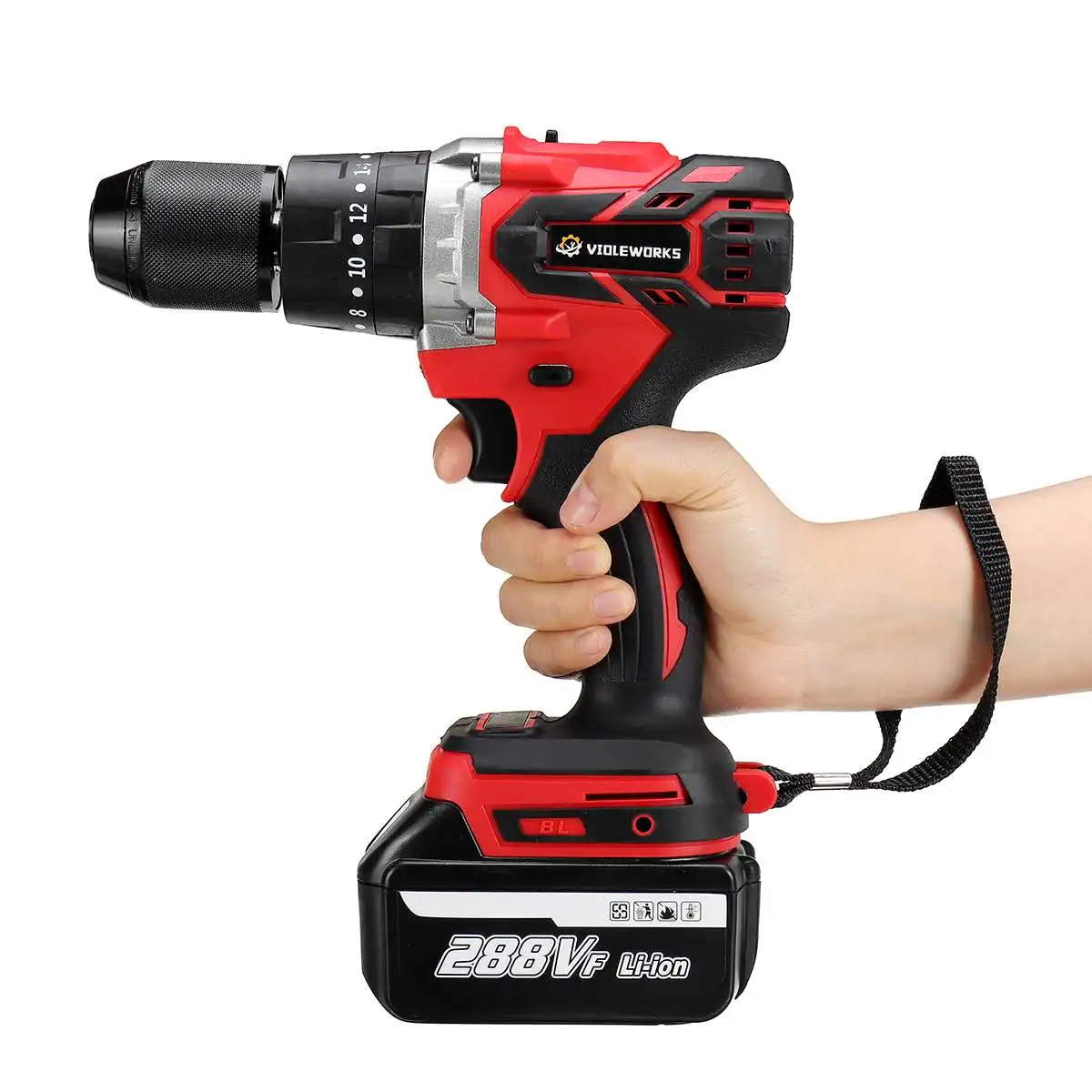 Бренд: VIOLEWORKSНазвание: Беспроводная Дрель 288VFМотор: бесщеточныйКрутящий момент: 350 Н. МБез скорости нагрузки: 4000 об/минРазмер патрона: 1/2 "(13 мм)Настройка сцепления: 20 + 3Аккумулятор: 22980 мАч3-в-1 Функция: бурильный молоток, отвертка, плоское сверлоМаксимальный диаметр сверла: Steel-13mm/ Wood-38mm/ Concrete-14mmДополнительный цвет: синий/красныйДополнительное количество батареи: 1 батарея/2 батареи