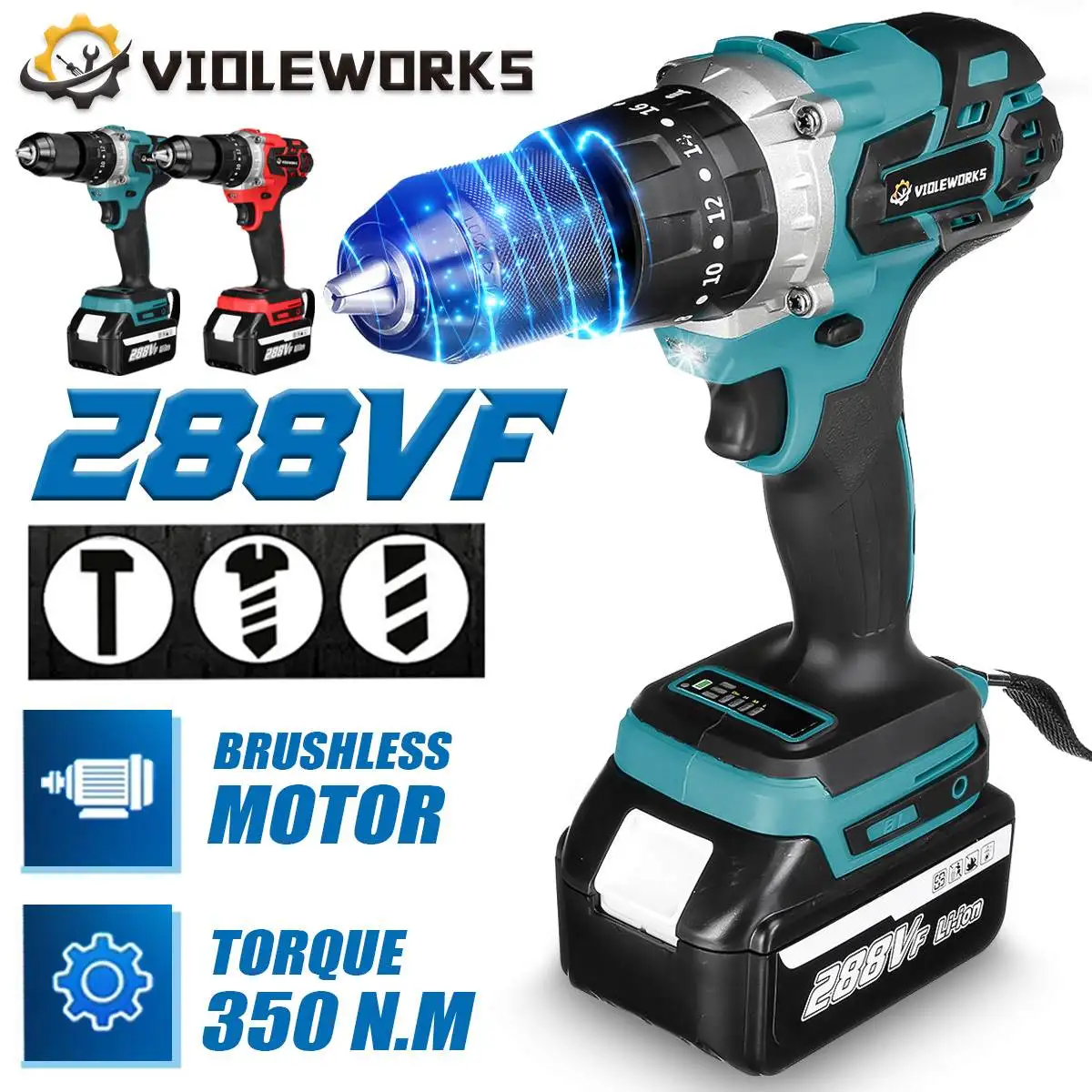 3 в 1 13 мм бесщеточная электрическая дрель отвертка 20 + 3 перезаряжаемая беспроводная ударная дрель 288VF для Makita 18V батарея