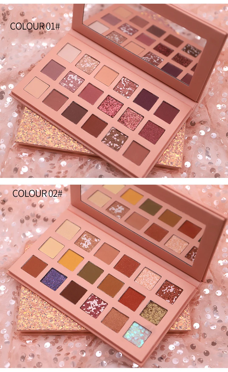 Палитра теней для век с блестками, 18 цветов, матовые, мерцающие, с...