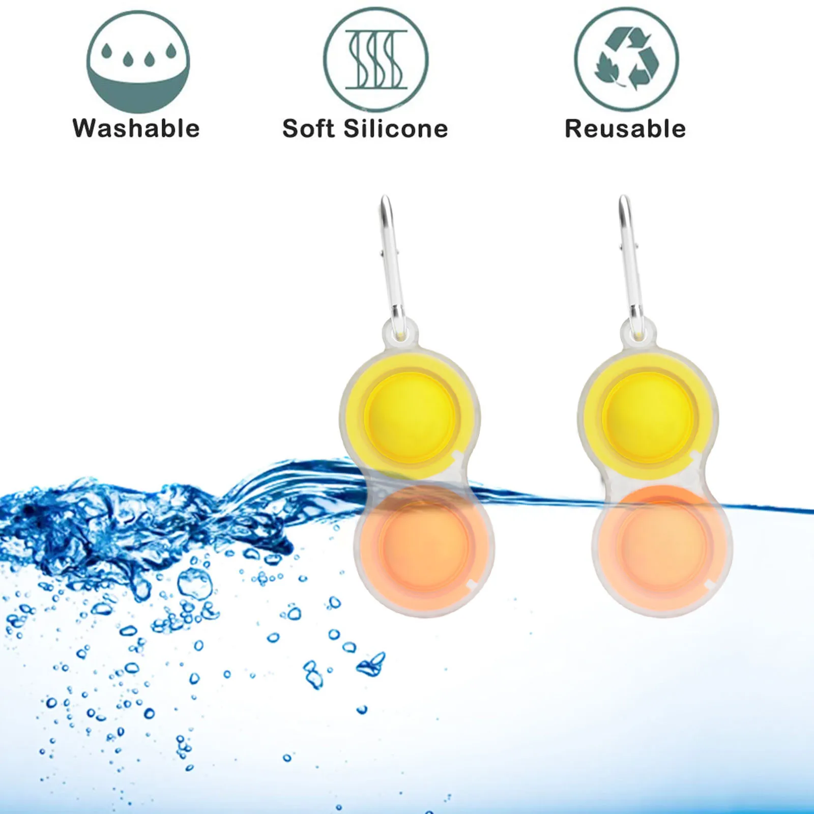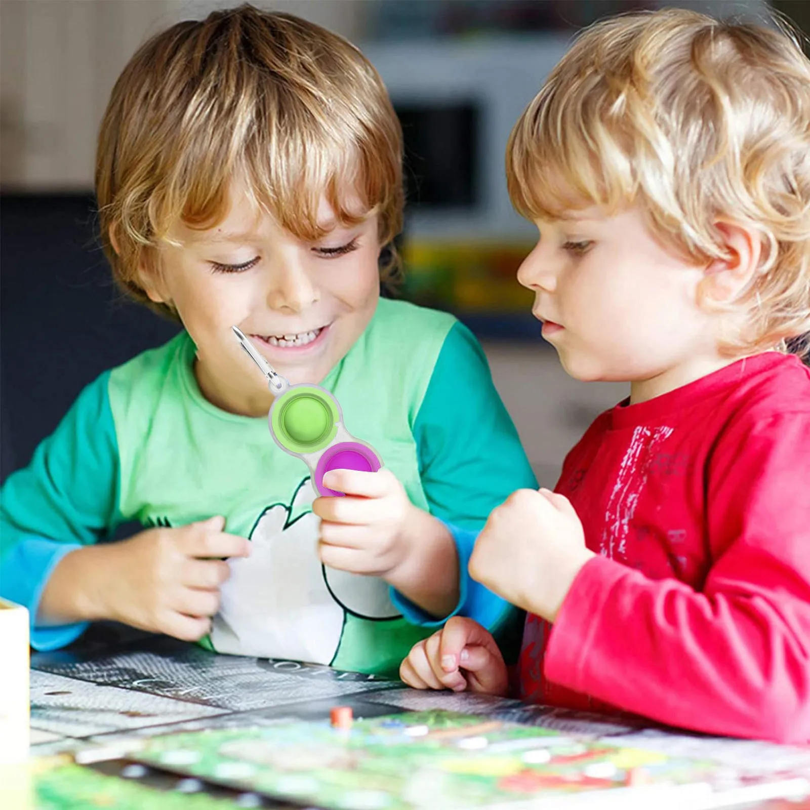 Уникальный брелок с силиконовыми аксессуарами; Бесконечные часы раздражения!Раздраженные пальцы не опускаются! Мини-зажим можно легко прикрепить к ключам, кошелькам, рюкзакамОчень подходит для взрослых старше 3 лет; Кнопки изготовлены из 100% силикона; Рамка изготовлена из высококачественного АБС-пластикаПоощряйте тактильную стимуляцию, спокойствие и концентрацию; Простая радость, которая неотразима!4 цветовых сочетания; Упаковка без разочарования