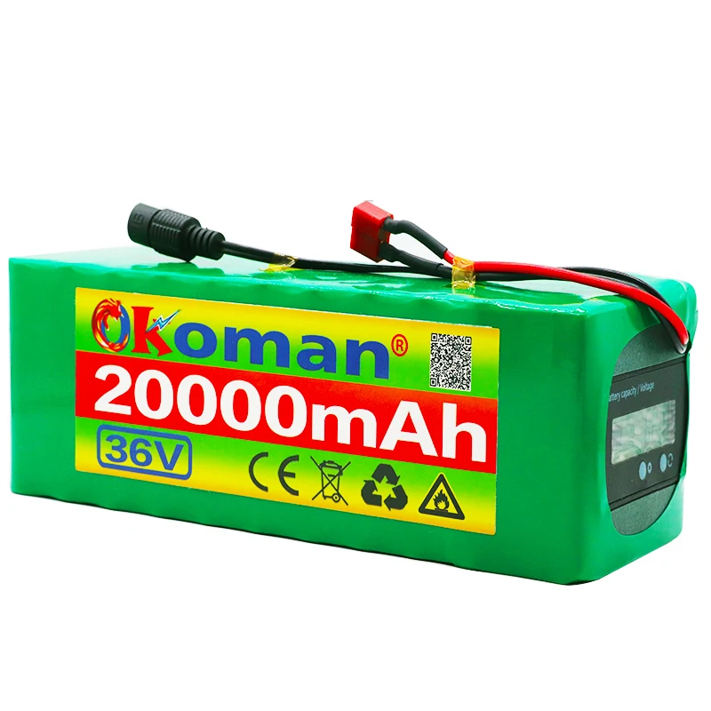 Аккумулятор для электровелосипеда 36 В, 20 А ч, 20 А, литиевая батарея BMS, 36 В, с вилкой для электровелосипеда, с индикатором емкости