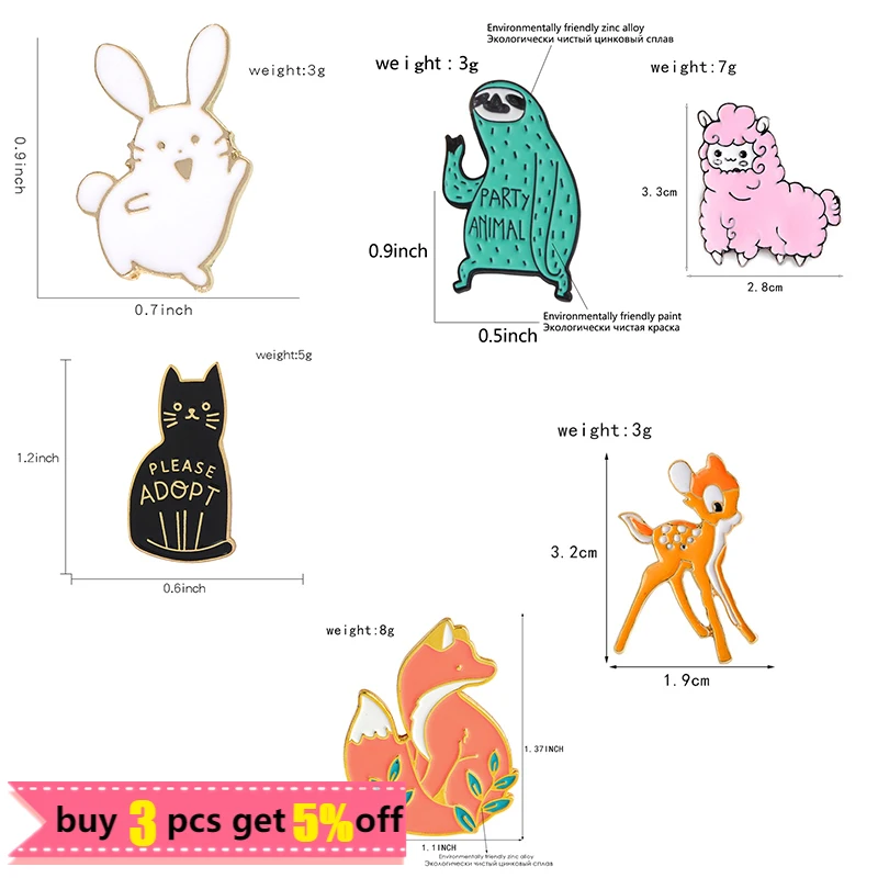 Забавные эмалевые броши в виде животных, милые кролики, лисы, Ленивцы, олени, кошек, овец, булавки на лацкан для детей, креативные Значки для одежды, рюкзака