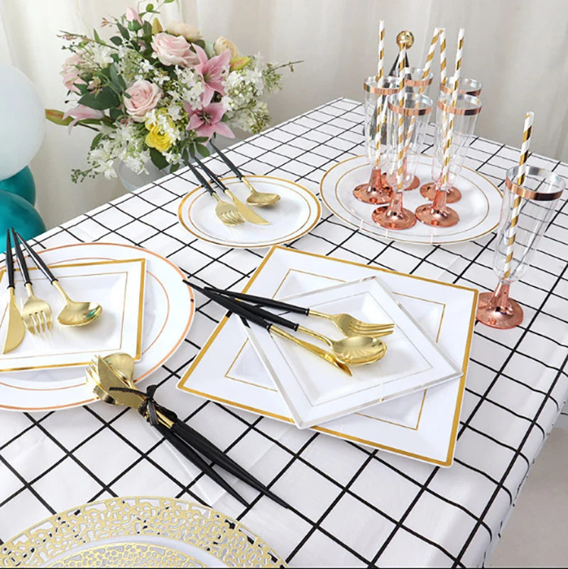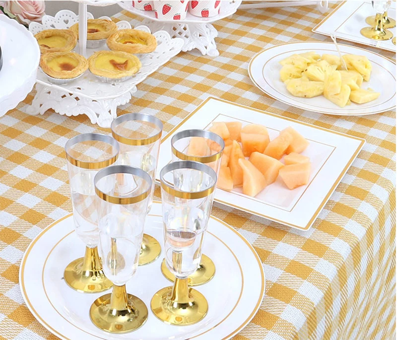 -Кристально Чистая пластиковая чашка для шампанского украшена золотой или розово-золотой окантовкой и основой, чтобы добавить элегантный, высококлассный и модный штрих к вашим важным мероприятиям или случаю.