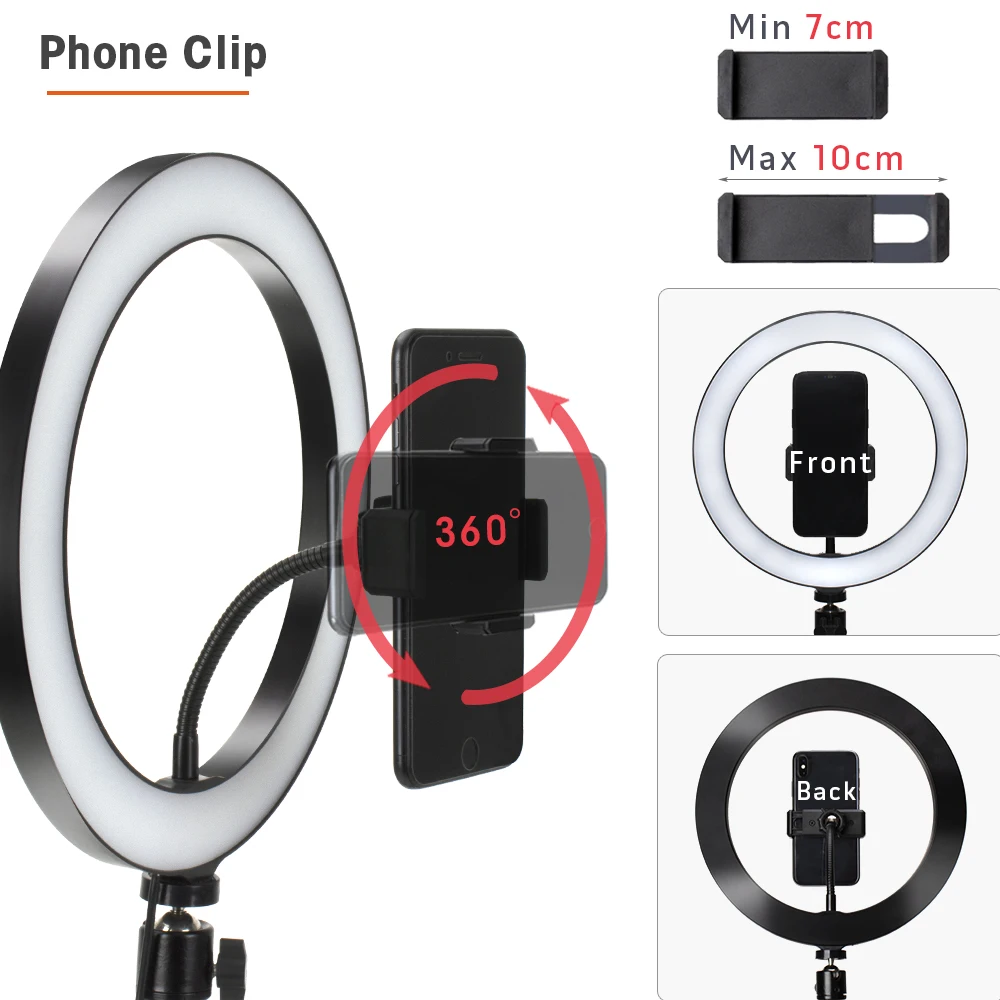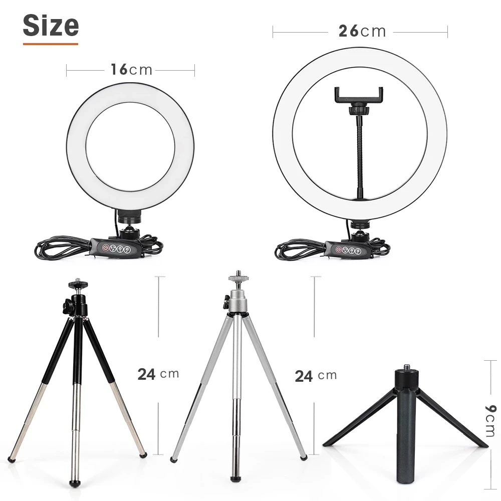 Кольцевая лампа для телефона, 10 дюймов, 3 режима, 10 яркостей, Usb...