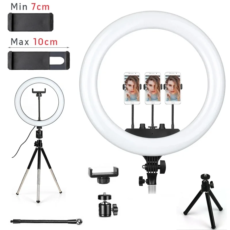 Кольцесветильник Светодиодная лампа для селфи, 45 см, с зажимом для...