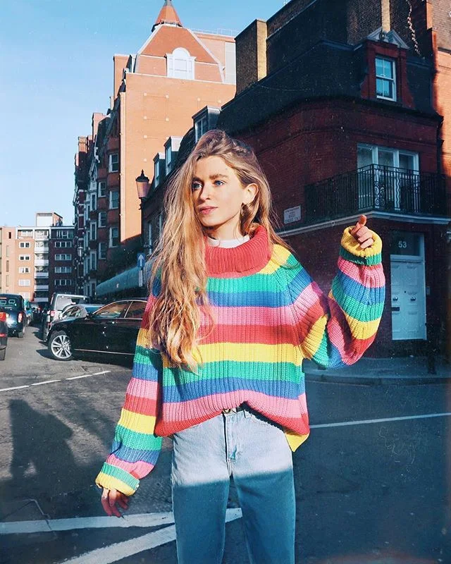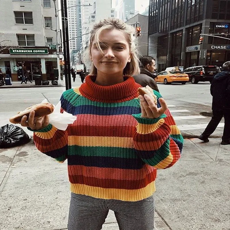2020 зимние свитера с высоким воротником для женщин C бантом в полоску цветастой радуги для детей Модный пуловер Женский вязаный джемпер женский свитер Лидер продаж