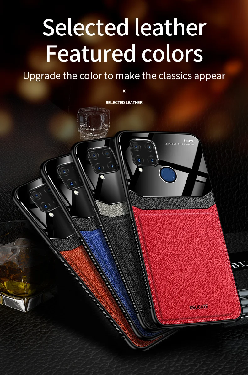 Противоударный чехол для Realme C15 C11 кожа Стекло на заднюю панель для телефона для OPPO Рино 4 Pro 4G 4Z 5G A53 A32 A33 2020