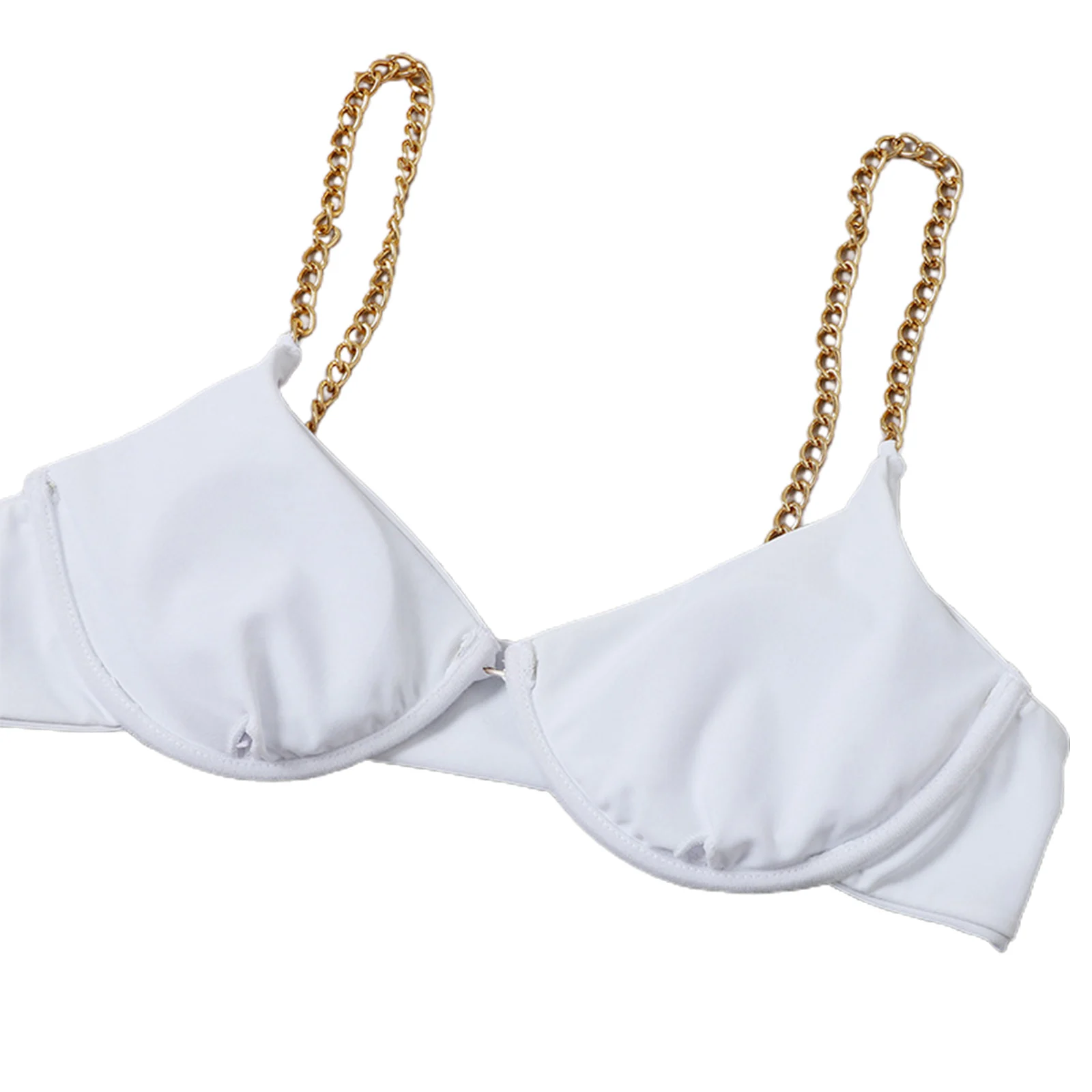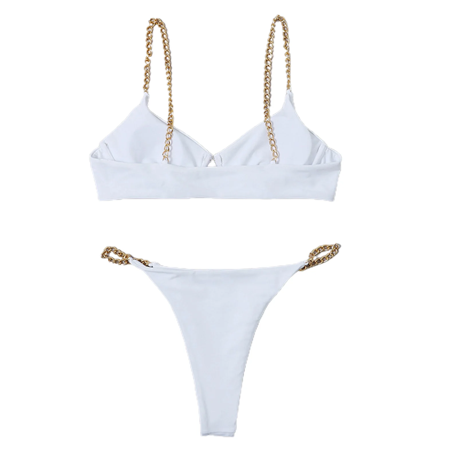 Комплект бикини женский, с цепочкой, на бретелях, с разрезом, с глубоким V-образным вырезом, пуш-ап