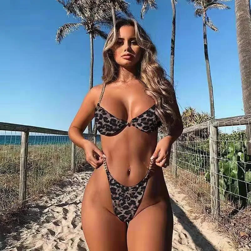 Женский костюм бикини из 2 предметов с цепочками, сексуальные топы с глубоким v-образным вырезом и треугольными Низами