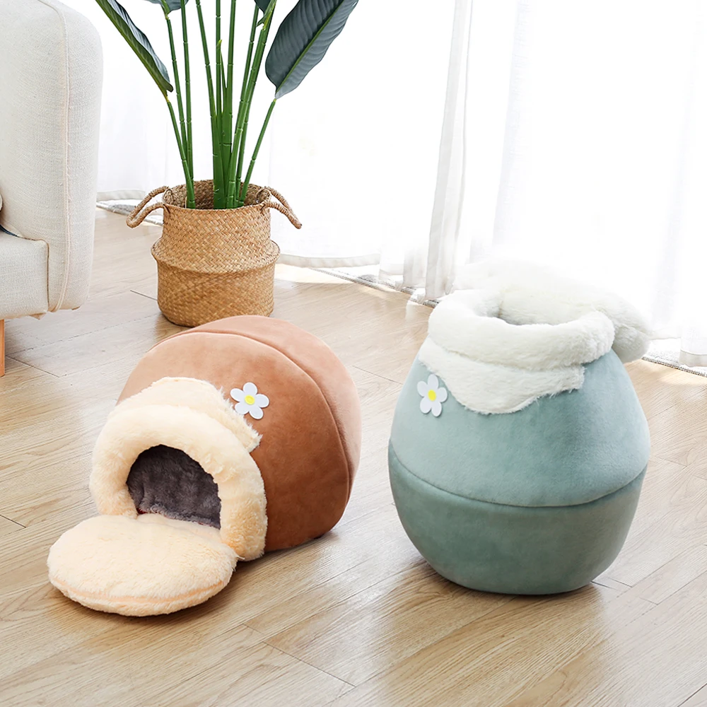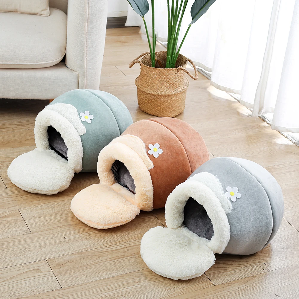 3 в 1 кровать для домашних животных для кошек, собак, мягкое гнездо, питомник, кровать для кошек, домик в форме горшка, спальный мешок, коврик, палатка для питомцев, зимний, теплый, уютный