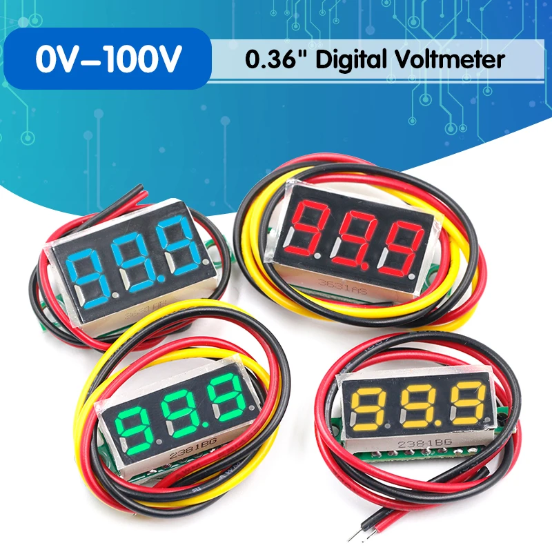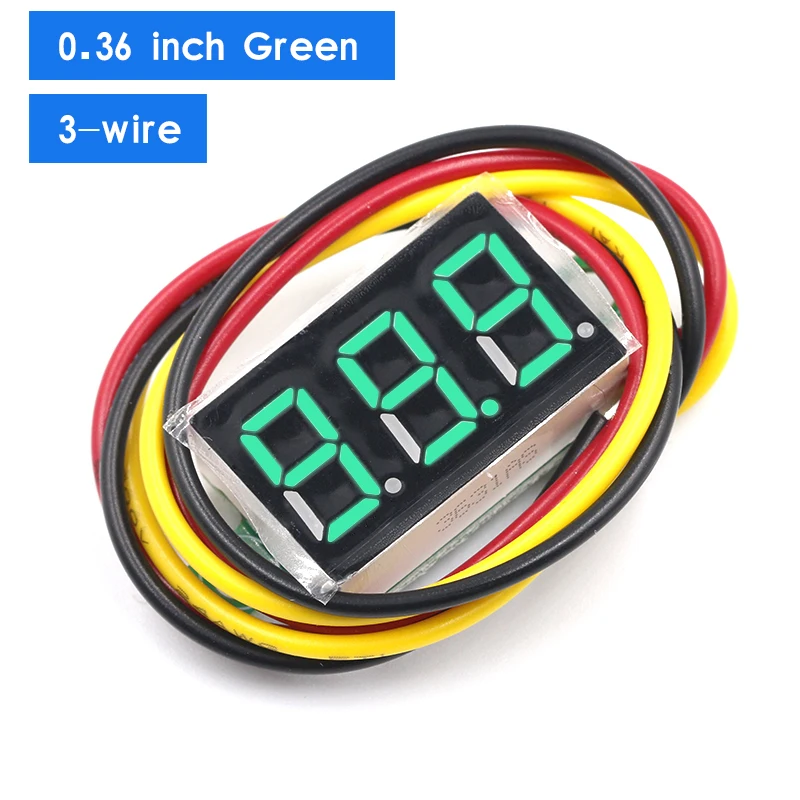 Цифровой вольтметр, 0,36 дюйма, 0,36 дюйма, красный, зеленый, синий, постоянный ток, 0-100 в, три линии, 3-значный измеритель напряжения, дисплей, светодиодный цвет