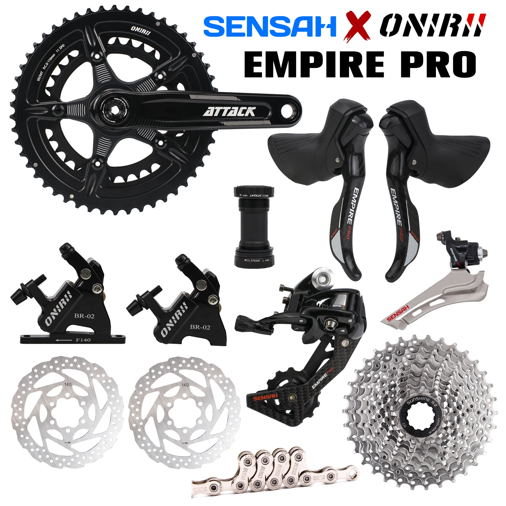 SENSAH EMPIRE PRO 2x1 2 скорости + коленчатый механизм ONIRII дорожный велосипедный групсет комплект 12 В велосипед углеродное волокно переключатель передач переключатель тормоз 105 R7000