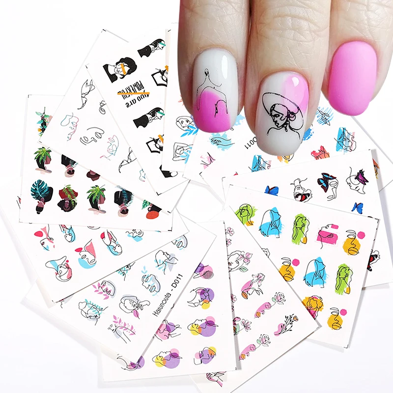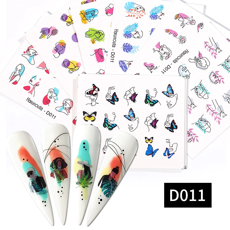 Harunouta 12 шт. Абстрактная живопись уход за кожей лица рисунки бабочек, Водные Наклейки для ногтей листья геометрические ползунки нейл-арта украшения