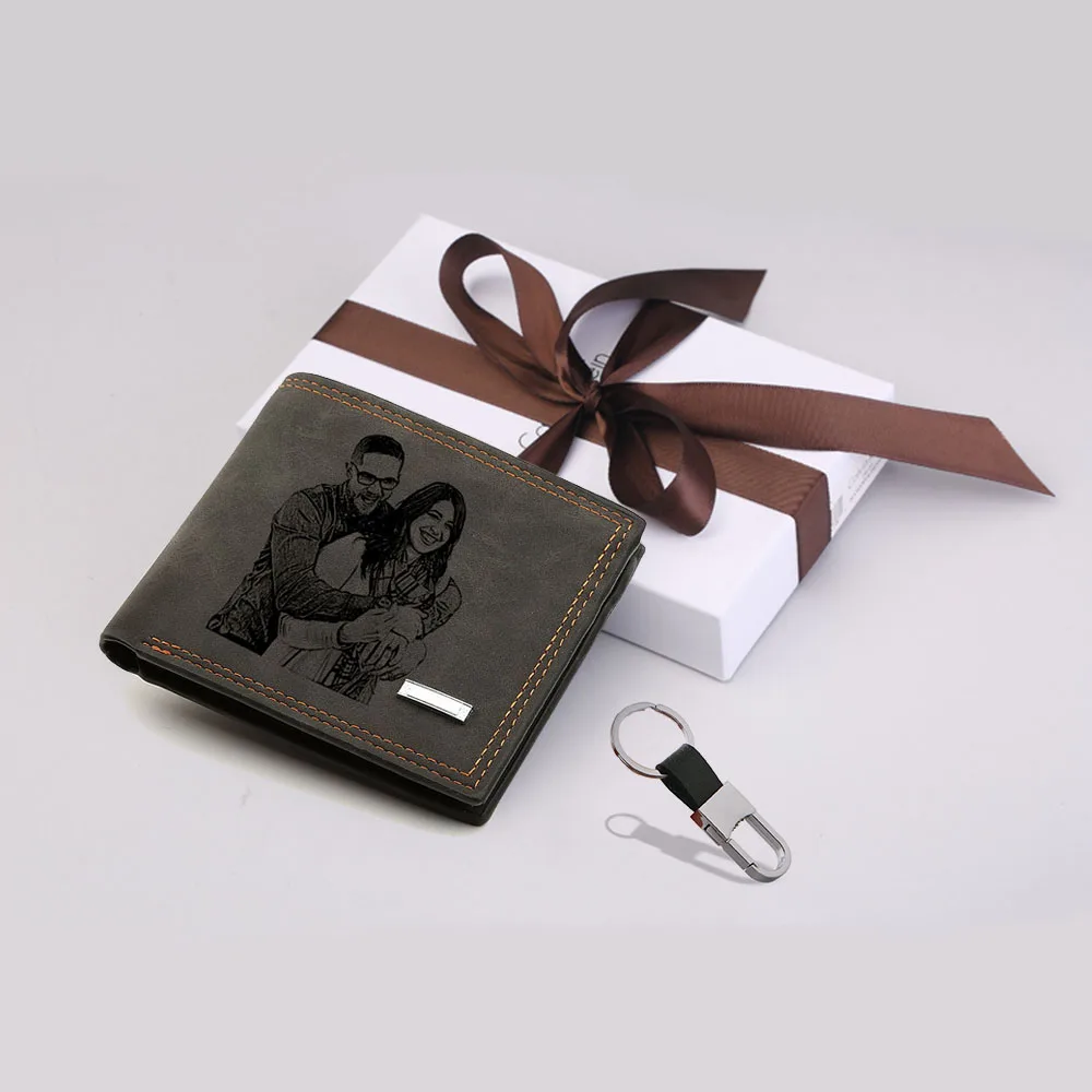 Персонализированные кошелек с местом для фото для Для мужчин на день рождения Юбилей, подарки для женщин и мужчин за него, папы, сына, дочки мужаДля мужчин индивидуально выгравироанные надписи кошелек коробка