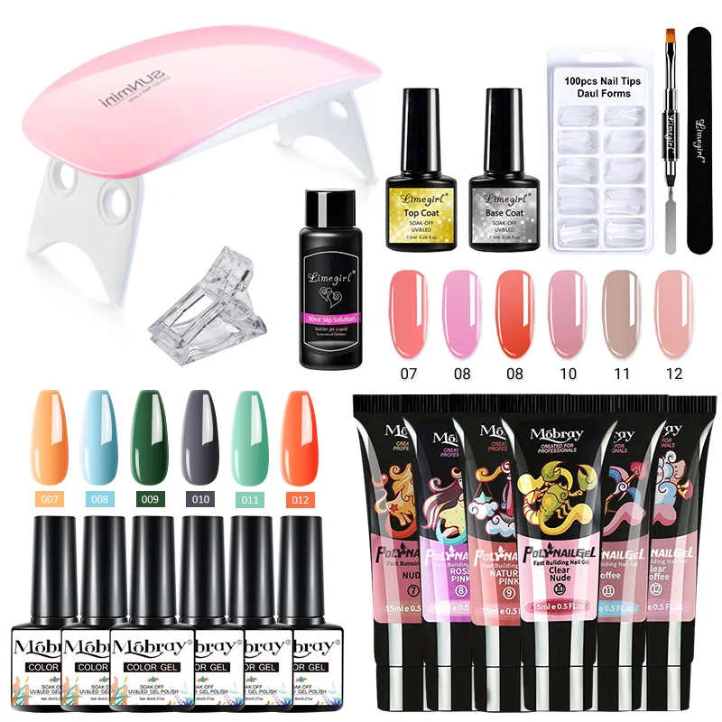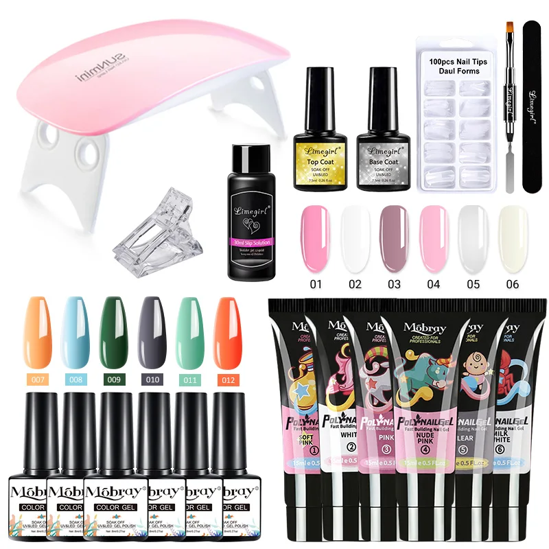 Mobray поли набор гелей для ногтей маникюрный набор с лампой комплект Polygels ногтей набор УФ лаков гибридный шаговый двигатель для наращивания ногтей акрил гель набор