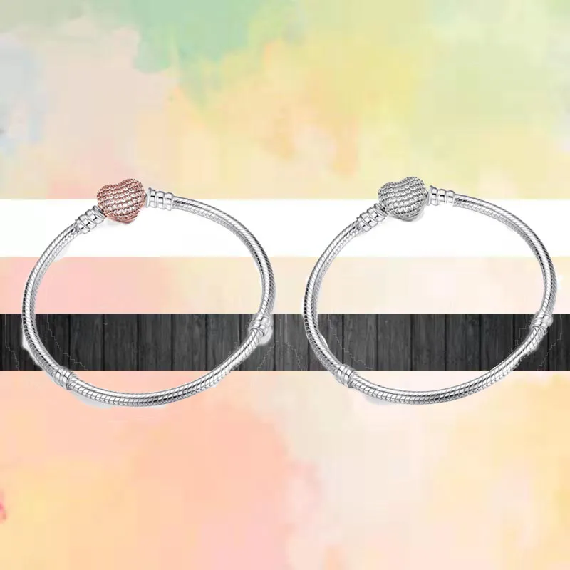 Классический Браслет 2021 из натурального серебра, с серебряным покрытием, змеиный браслет, подходящий для оригинального европейского шарма, браслет с любовью из циркония, женские Украшения сделай сам