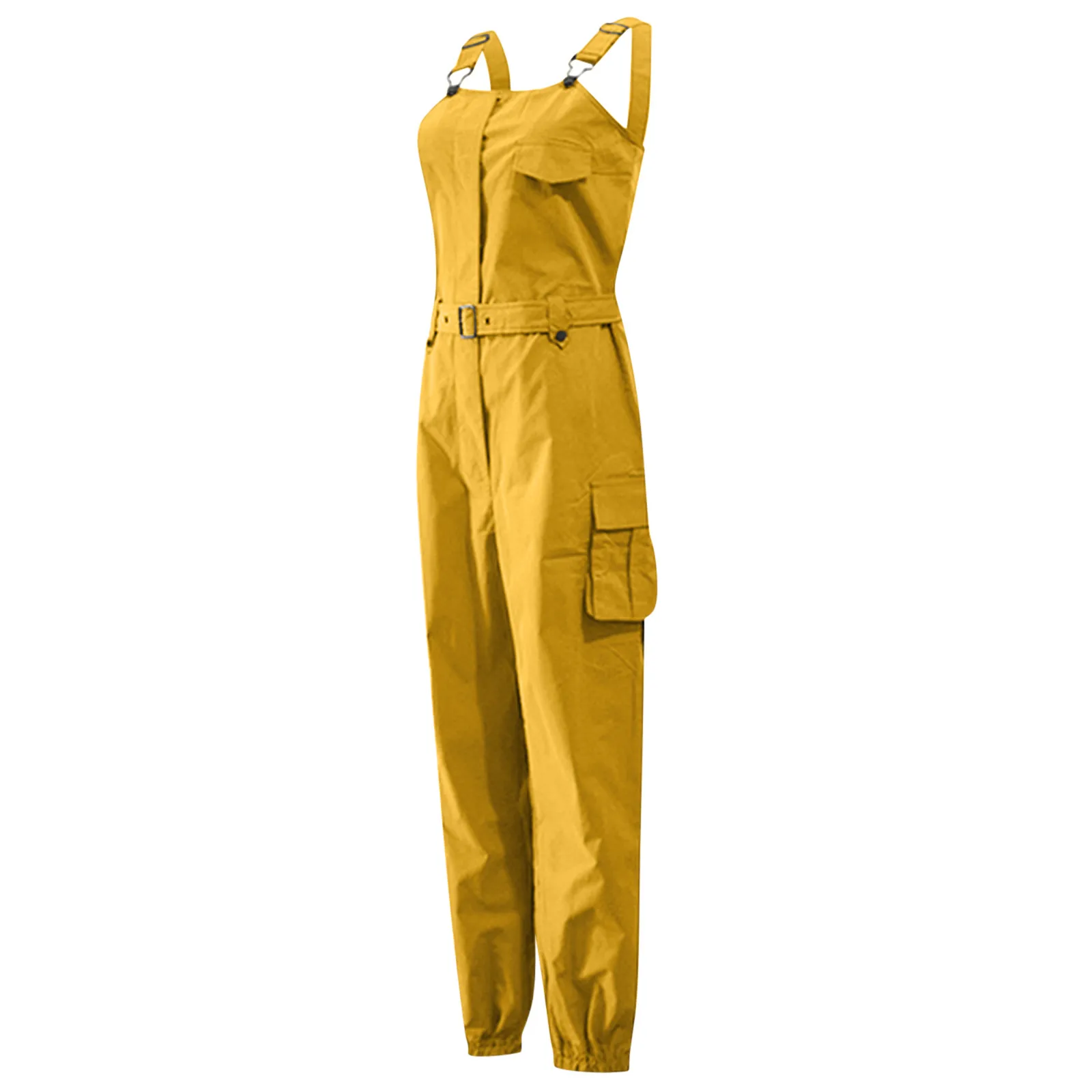 Комбинезон женский на бретельках, уличная одежда, длинные ромперы, однотонные брюки-карго с карманами, повседневный костюм, лето