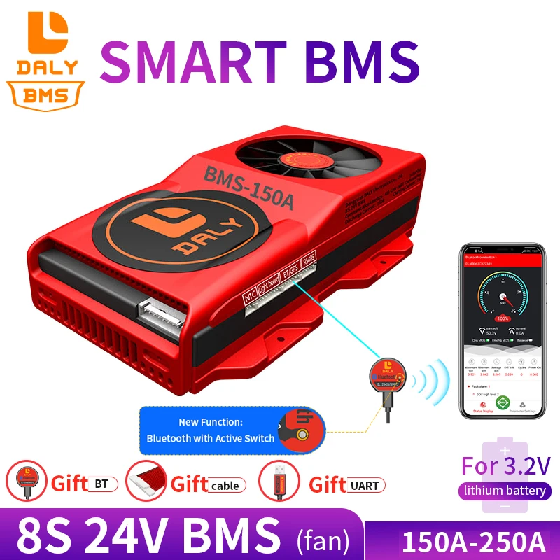 Daly Smart Bms LiFepo4 8s 24V 150A 200A 250A с Bluetooth BT Soc Boa...