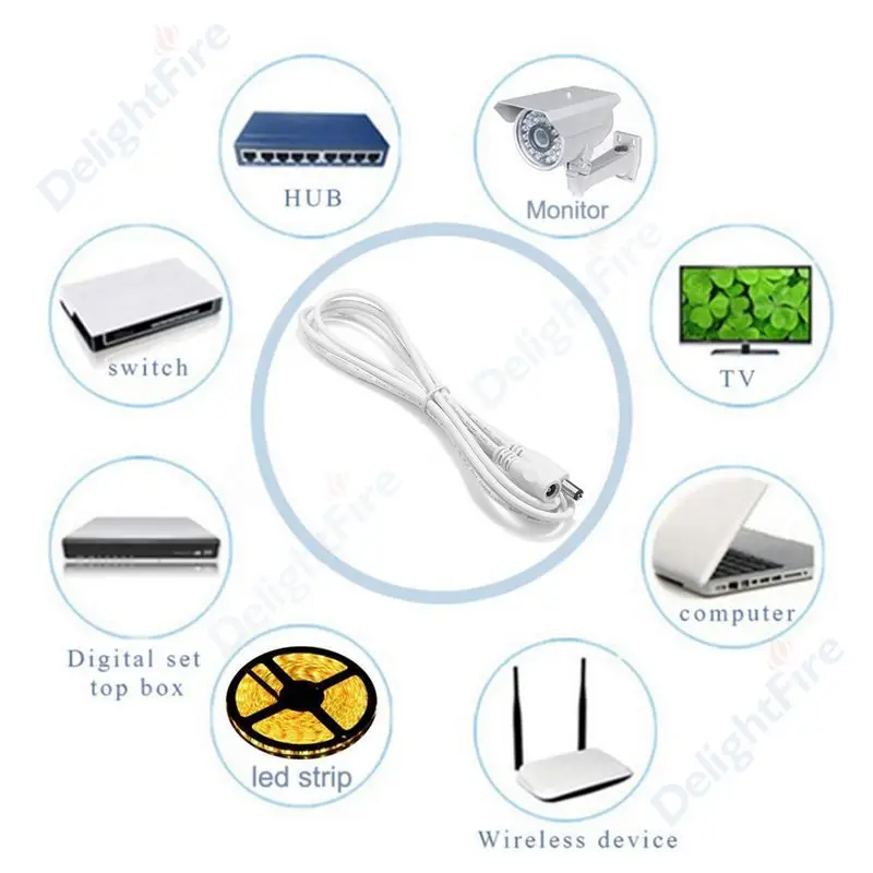 100% абсолютно новый разъем питания постоянного тока удлинитель провода Тип кабеля: 22AWG 80 °C 300V Внешний диаметр: 5,5 мм Внутренний диаметр: 2,1 мм Материал проводника: Луженая медь Изоляционный материал: ПВХ Длина кабеля: 0,5 м/1 м/1,5 м/2 м опциональноПосылка включает в себя: