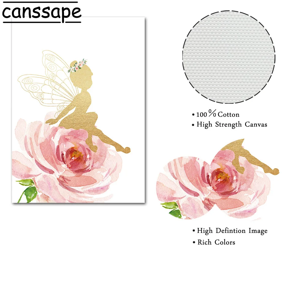 Питомник Холст Картина пользовательское имя плакатов и украшением в виде цветка Плакаты со сказочным цветком картина на стену скандинавский принт для маленьких девочек украшение комнаты
