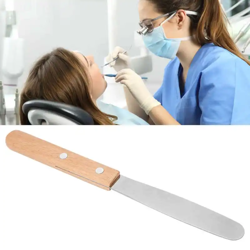 Шпатель из нержавеющей стали гипс стоматологический, деревянная ручка, стоматологический шпатель смешивание, перемешивание, аксессуар для ухода за полостью рта, инструменты для стоматологического оборудования